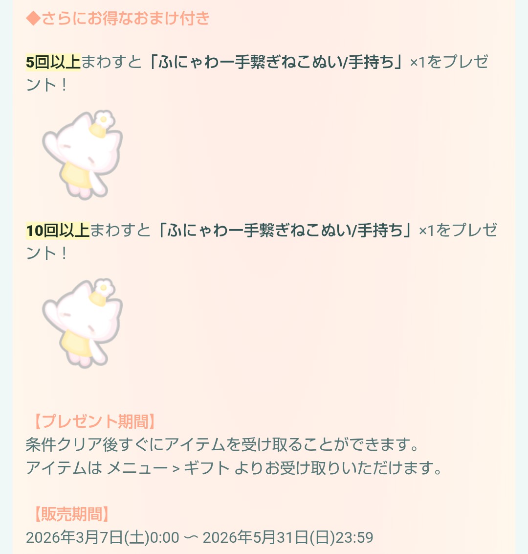 規定回数でのおまけと販売期間