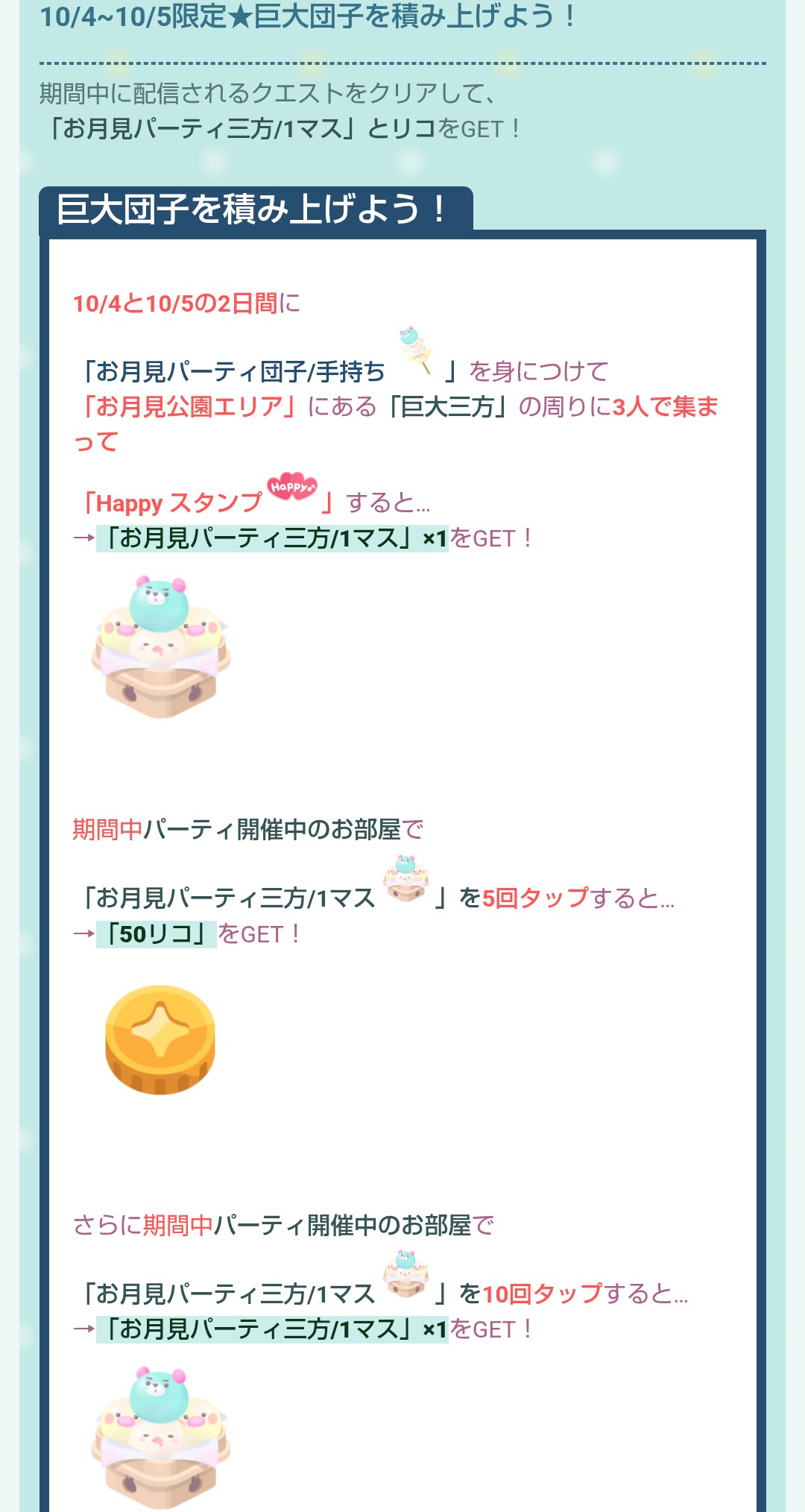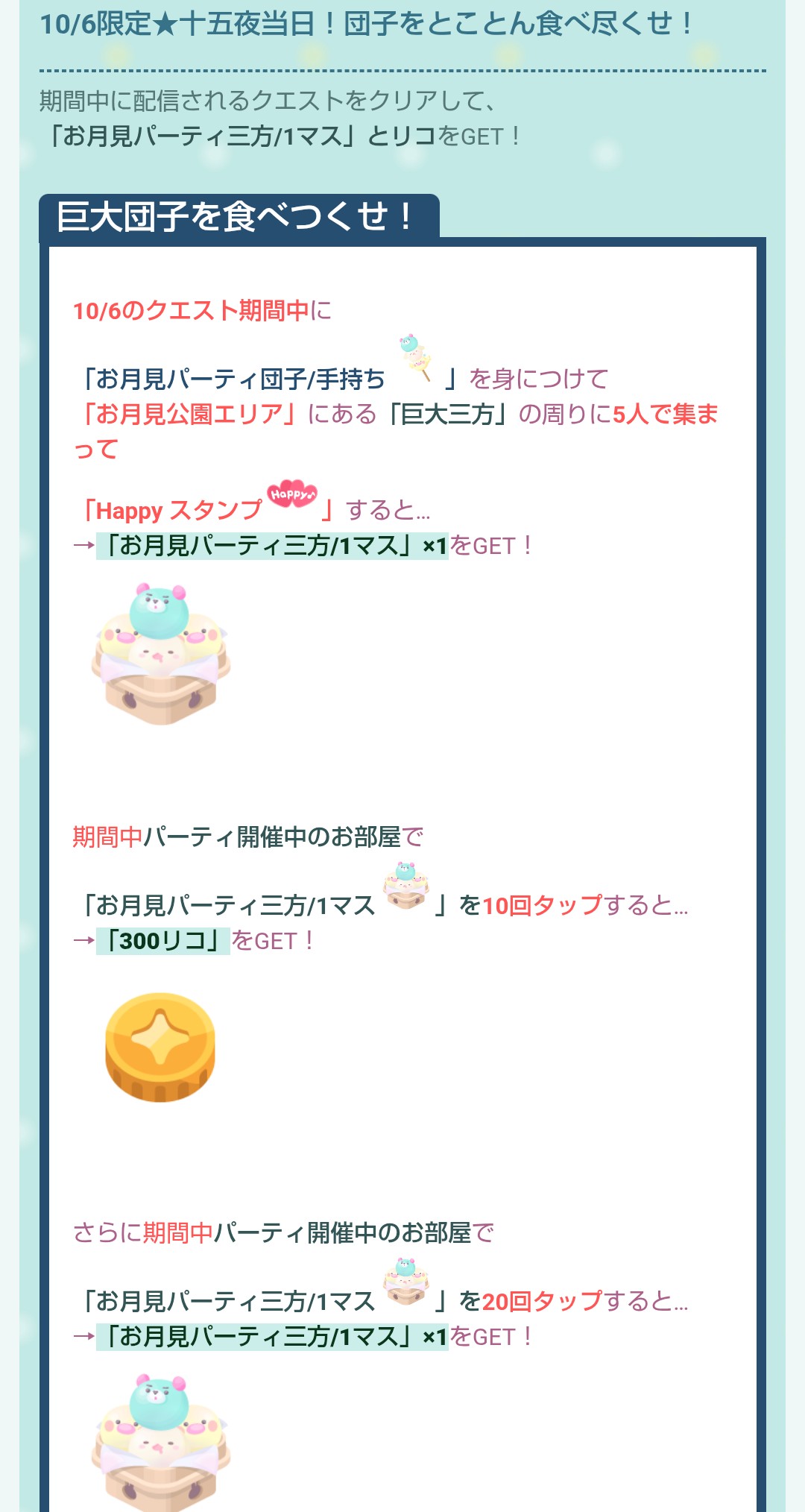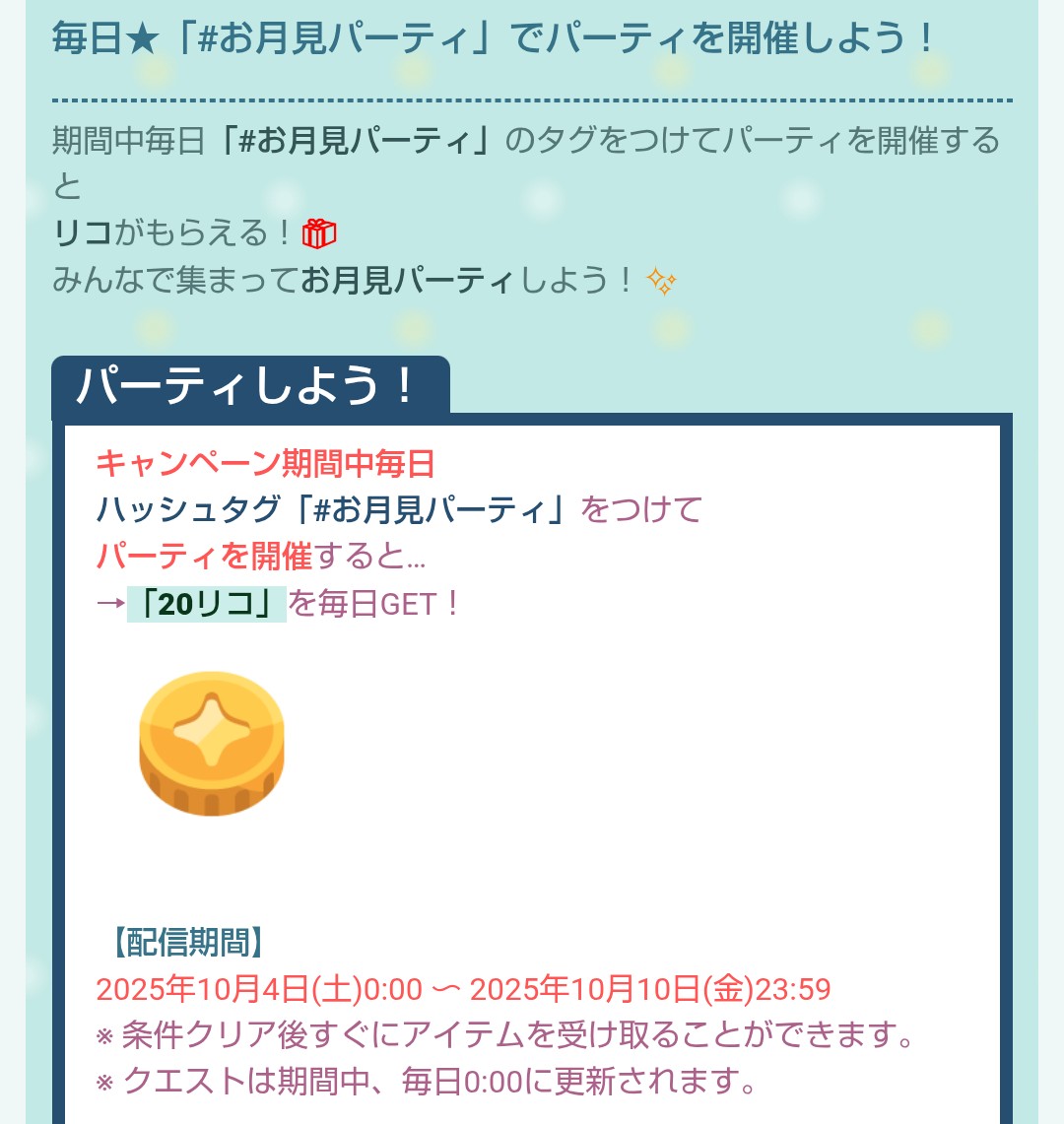 こちらでは期間中毎日ハッシュタグ【#お月見パーティ】をつけたパーティを開催することで
