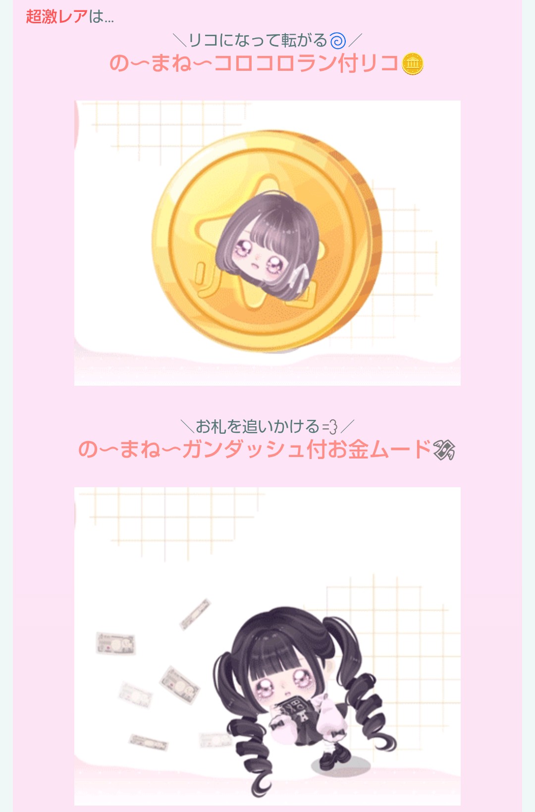 移動速度が早くなるガンダッシュがついたムードの複合アバター2種類となっており