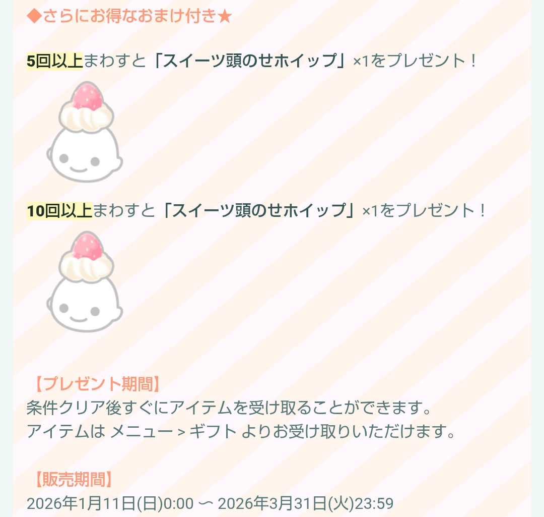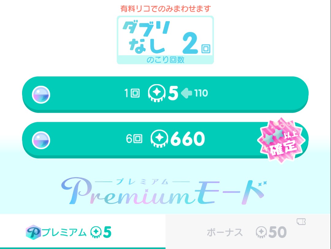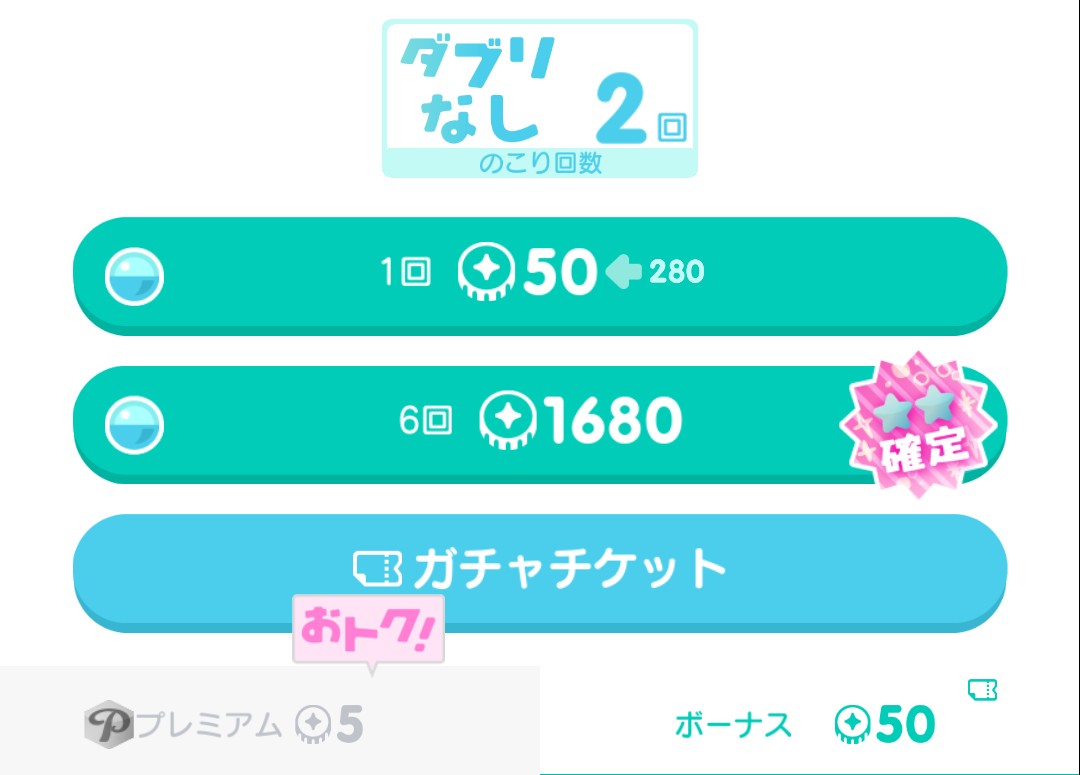 おまけ内容では初回の連ガチャでもらうことができる5回(連ガチャは6連のため)+10回にて