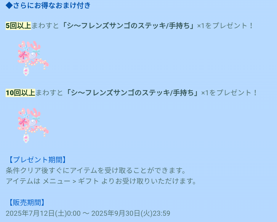 おまけ内容では初回の連ガチャで貰う事ができる5回(連ガチャは6連のため)+10回にて