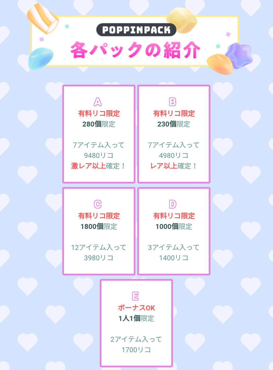 テケトーダデェ 今回のポッピンパック(以降PP)なんだけど、ぶっちゃけ先月までのクオリティより低くなっているような気がするデザインに思ったwポッピンパックといえば無料リコでも購入できる有料クオリティの内容で、毎月インパクトや個性がでるようなオシャレアバターが多く登場していて期待値や楽しみがあったんだけど~、今月のデザインはなんか一部のユーザーにしか受けなさそうな内容なのでなんだかなぁ…って思いましたね( ゚д゚)マジカ