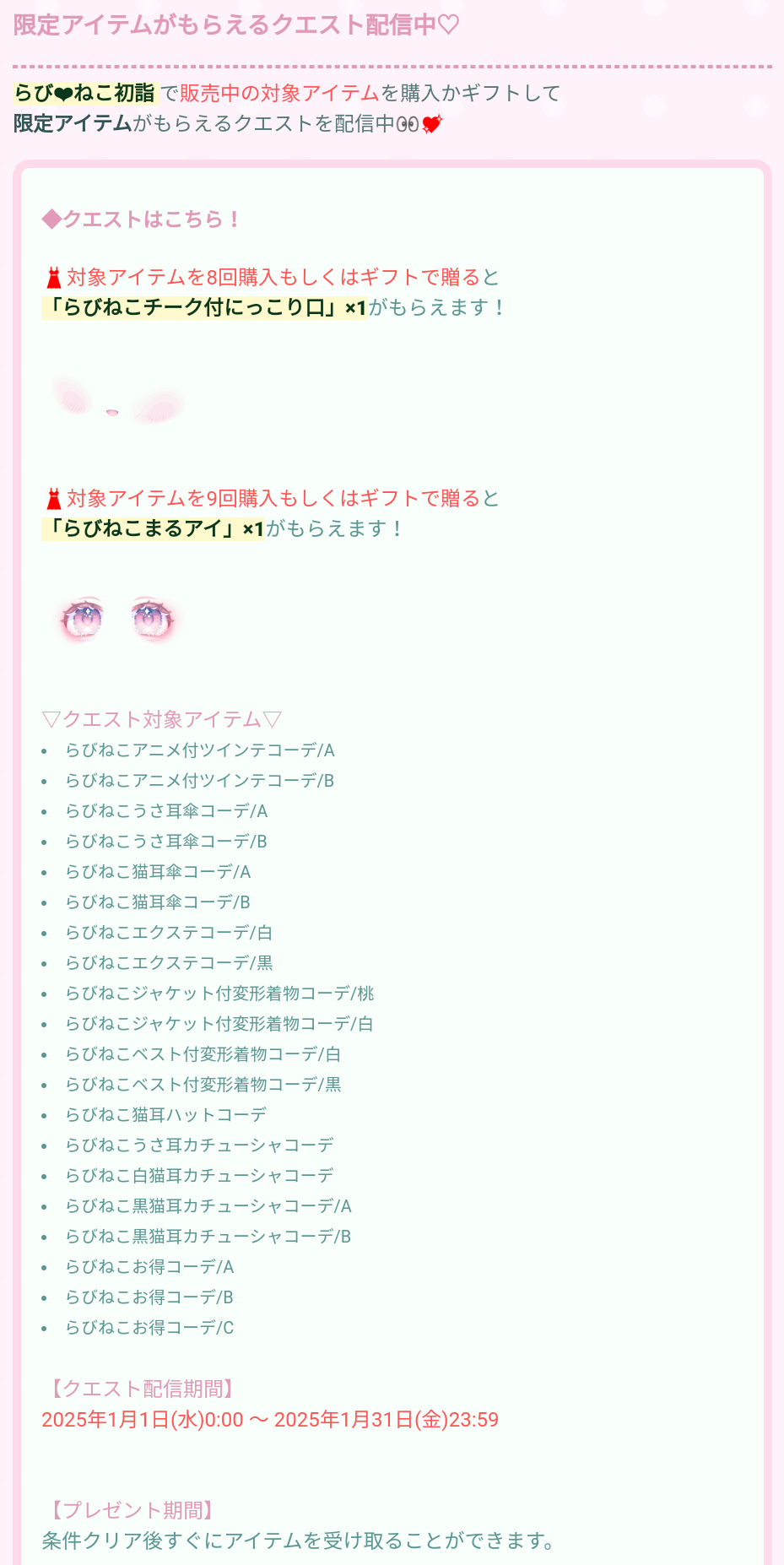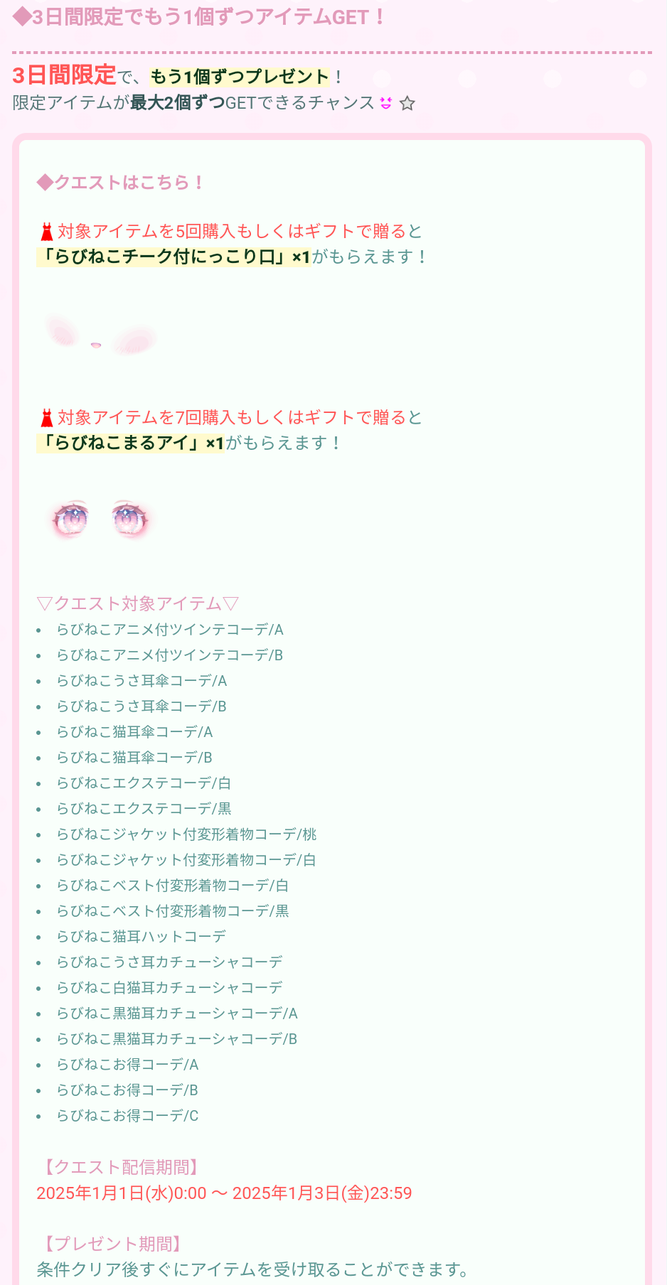 ギフトクエスト&3日間限定クエストで目と口