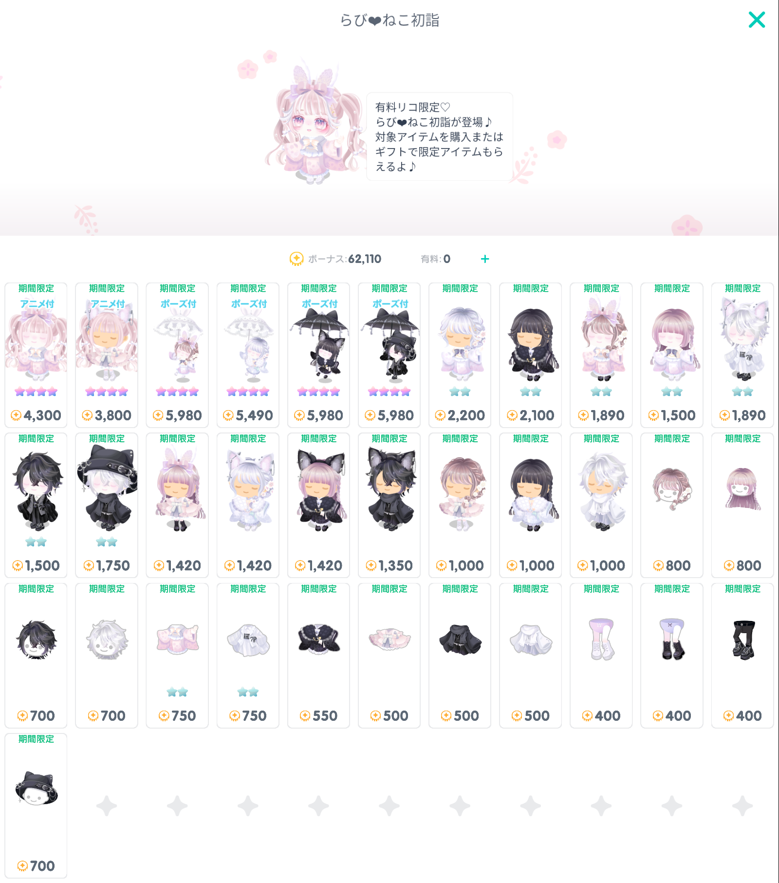 アニメーション付きアバターのセットだとまだ微課金ユーザーでも手に入れやすい方だと思えるのは〇ですね(´ー`*)ウンウン