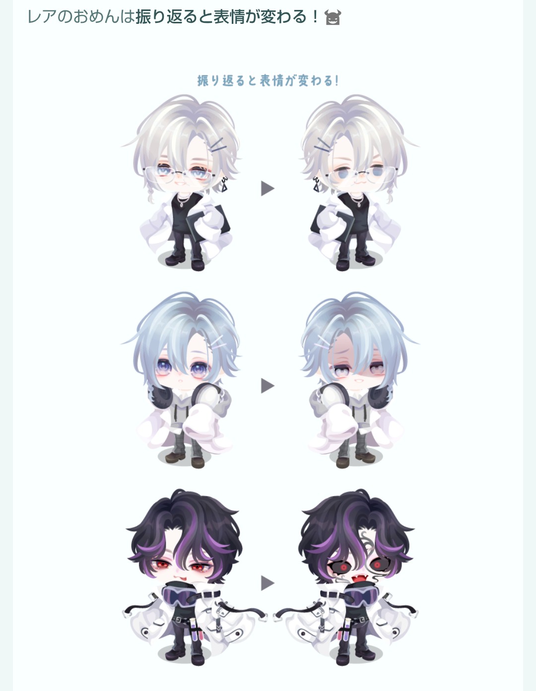 普段ならこの上に激レアとして顔パーツの目があったりするんだけど、今回はそれが無くおめんで顔が完成する上に向き変えから表情変わるとか優秀かよwww
