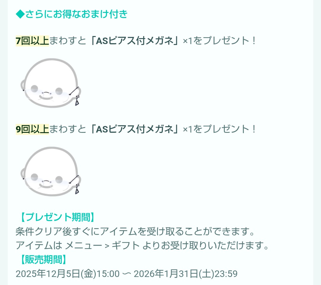 おまけ内容では初回の連ガチャではあと1回足りないシリーズの7回+9回にて