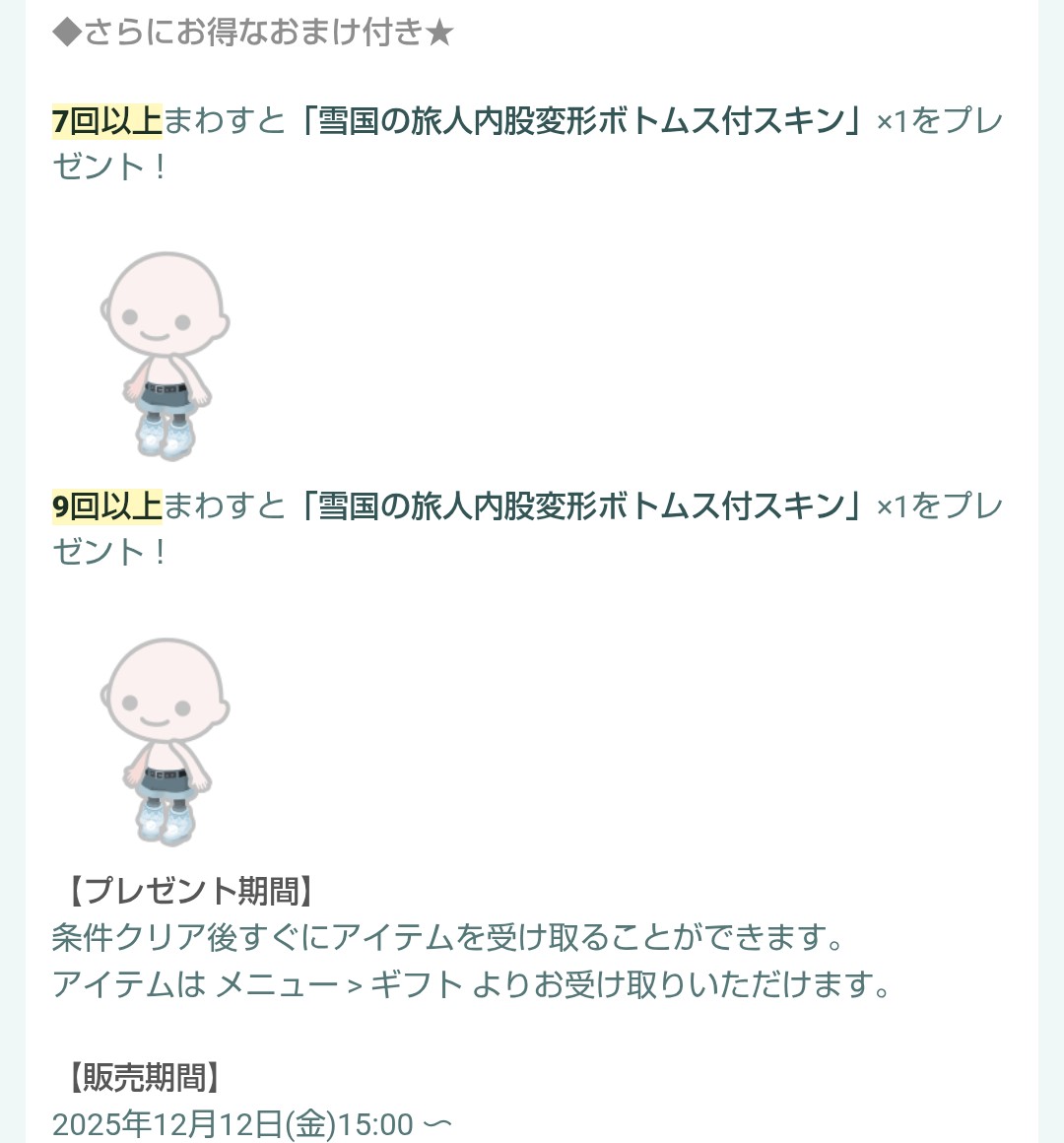 規定回数でのおまけと販売期間