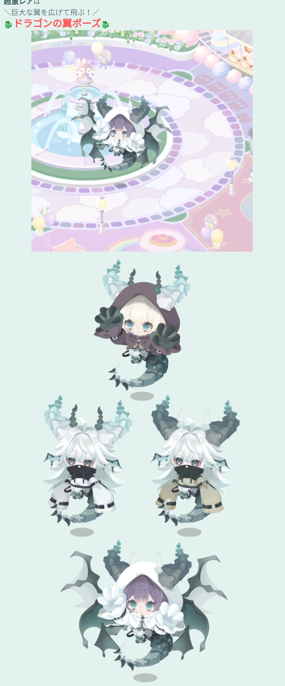 ドラゴンの翼がついたふわっとポーズなんだけど~翼がバサバサせず、