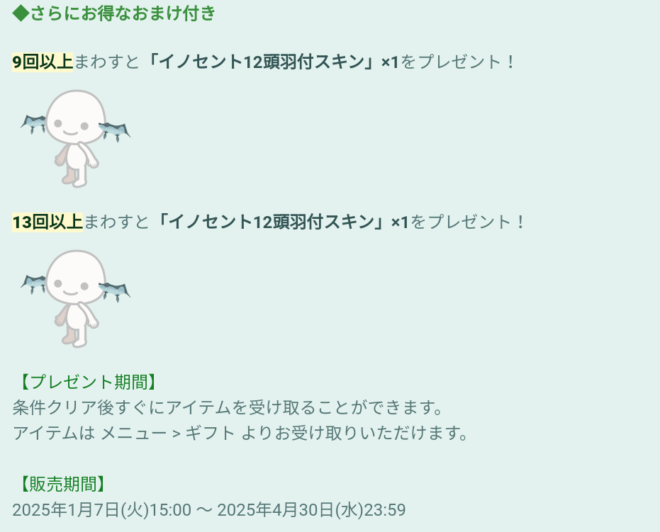 規定回数でのおまけと販売期間