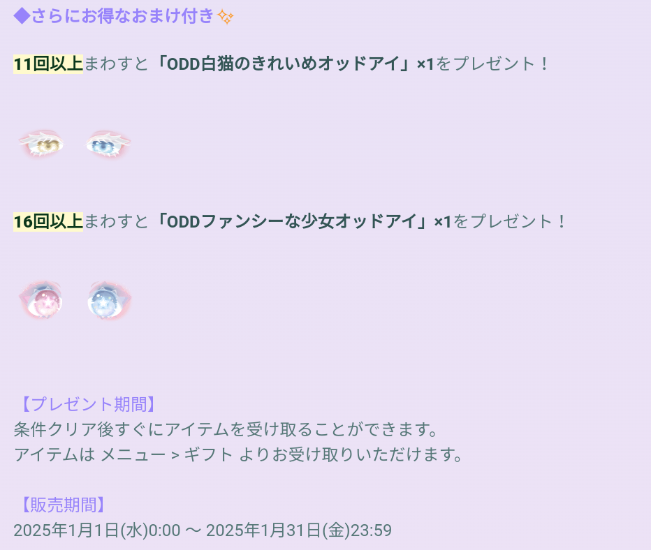 そこで初めて回すことができる有料ガチャより「ODD EYE COSME」