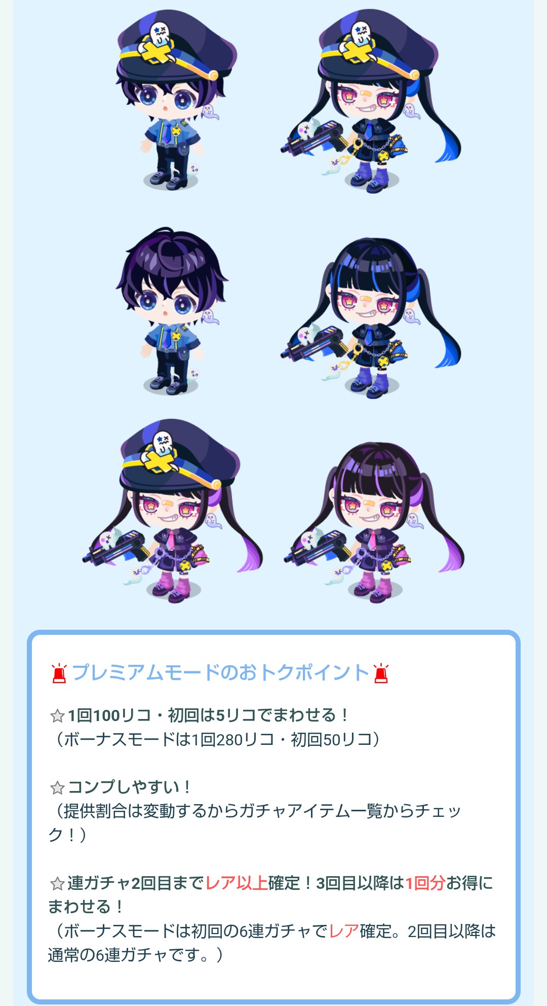 ダダ被りな6キャラのセットアップコーデとなっていて