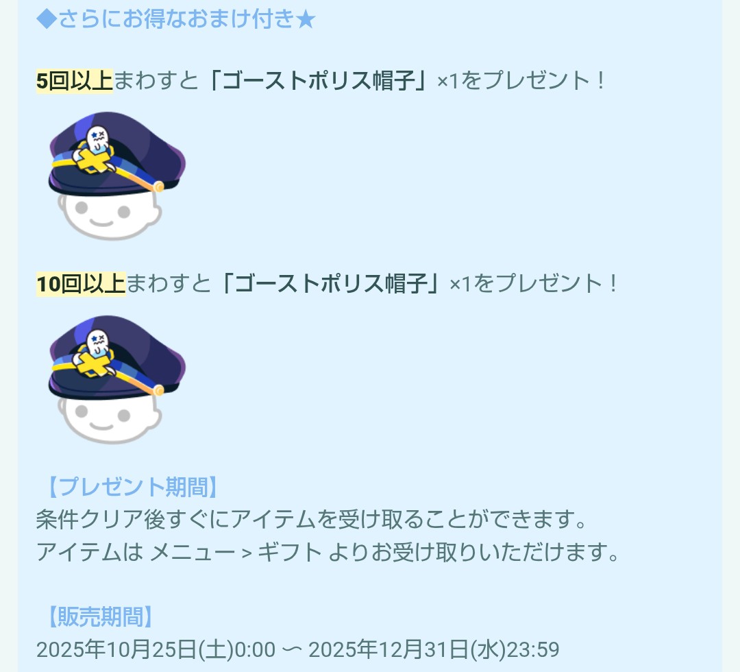 ポリス帽子が貰えるんだけど〜
