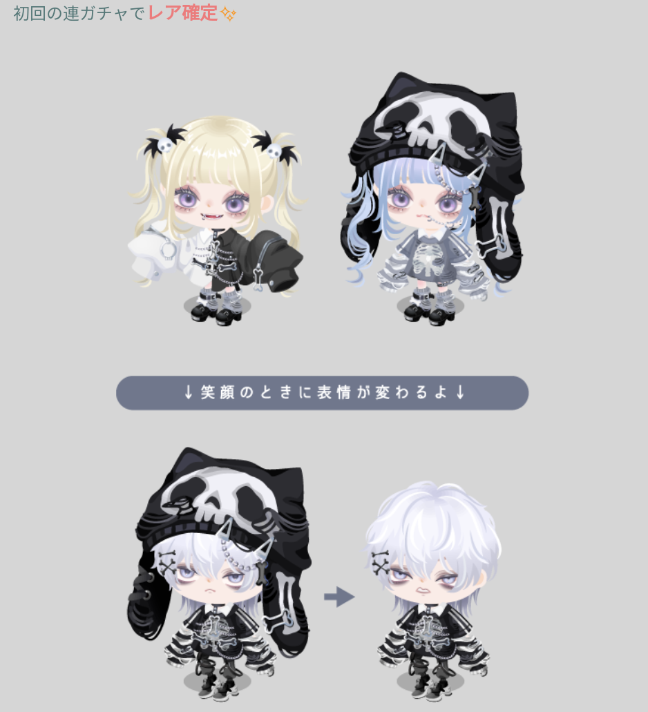 こちらでは笑顔の時に表情が変わる口パーツが目玉内容の有料ガチャより