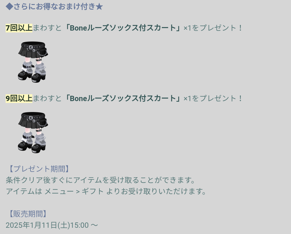 にてルーズソックス付きのスカートとオシャレなアバターが貰えるんだけど~
