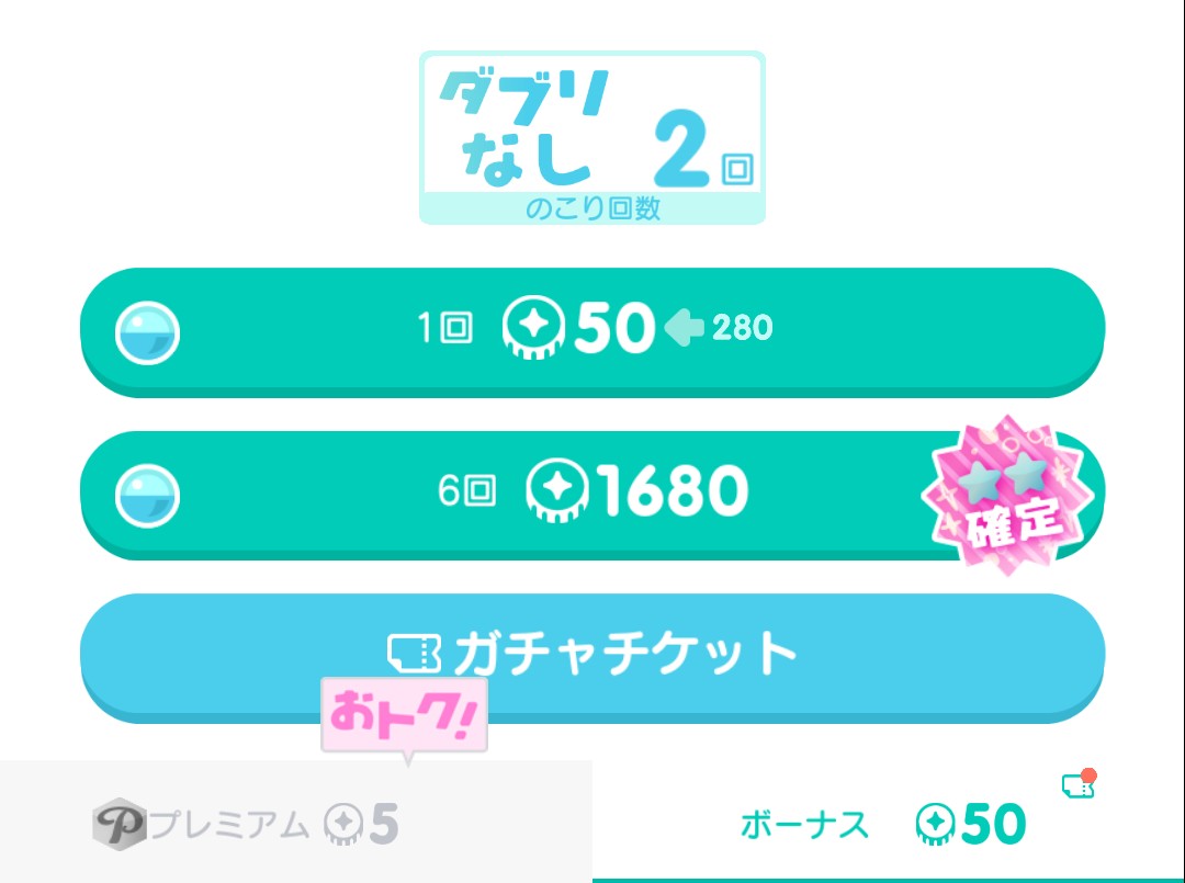 おまけ内容では初回の連ガチャではあと1回足りないシリーズの7回(連ガチャは6連のため)+