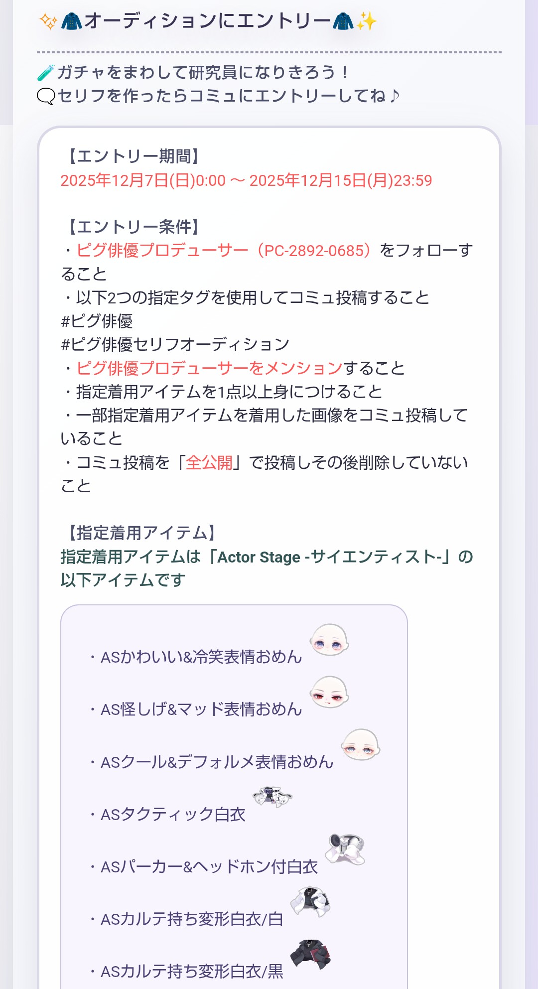 こちらでは先日登場したアクターステージガチャアバターを装着し、