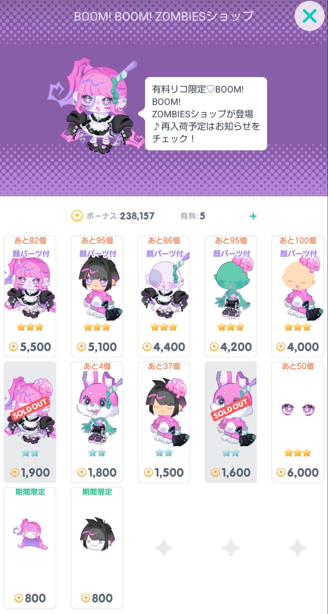 顔パーツがセットになってるコーデは5,000リコ前後と高額になっており、