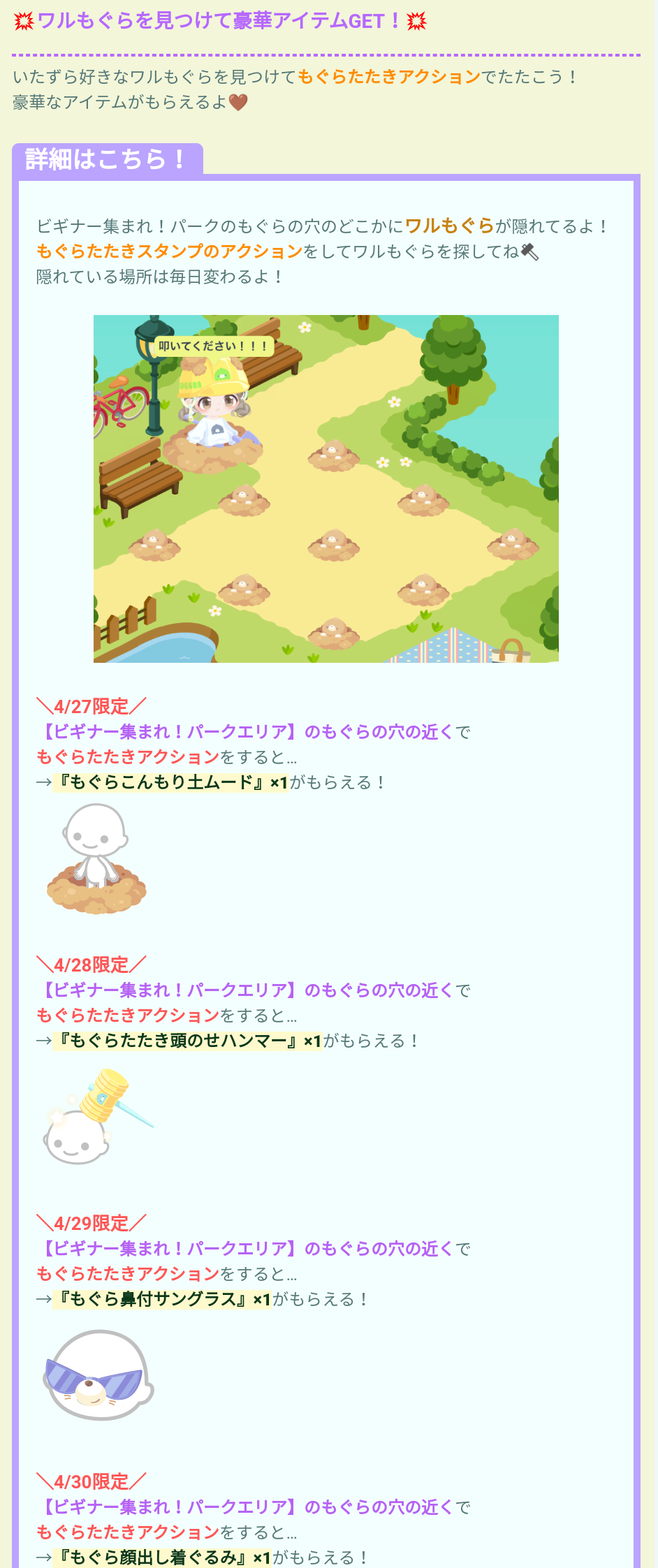 今回のクエストではもぐらたたきに必要なもぐらたたきスタンプをゲットする必要があります(´ー`*)ウンウン