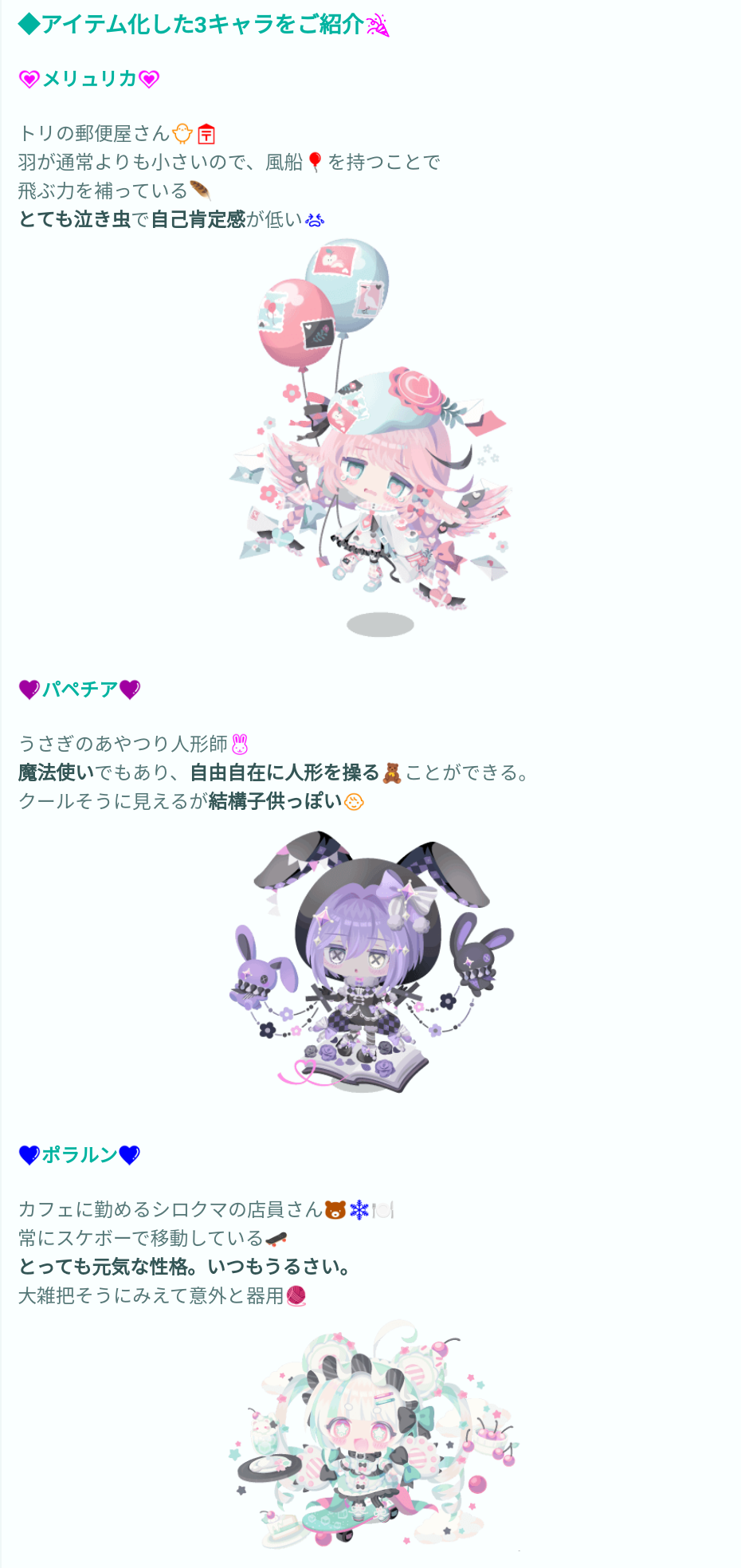 それぞれポラルン、メリュリカ、パペチアという3キャラの顔パーツの目が再現されていてクオリティも高く、