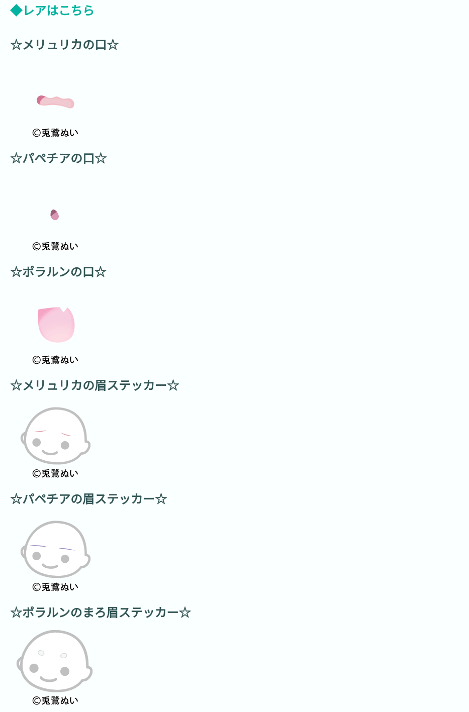 上記と同じくそれぞれ3キャラの口パーツと眉ステッカーが設定されており、