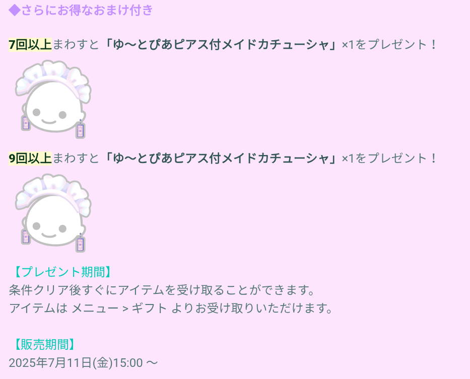 ピアス付のメイドカチューシャが貰えるそうなんだけど、