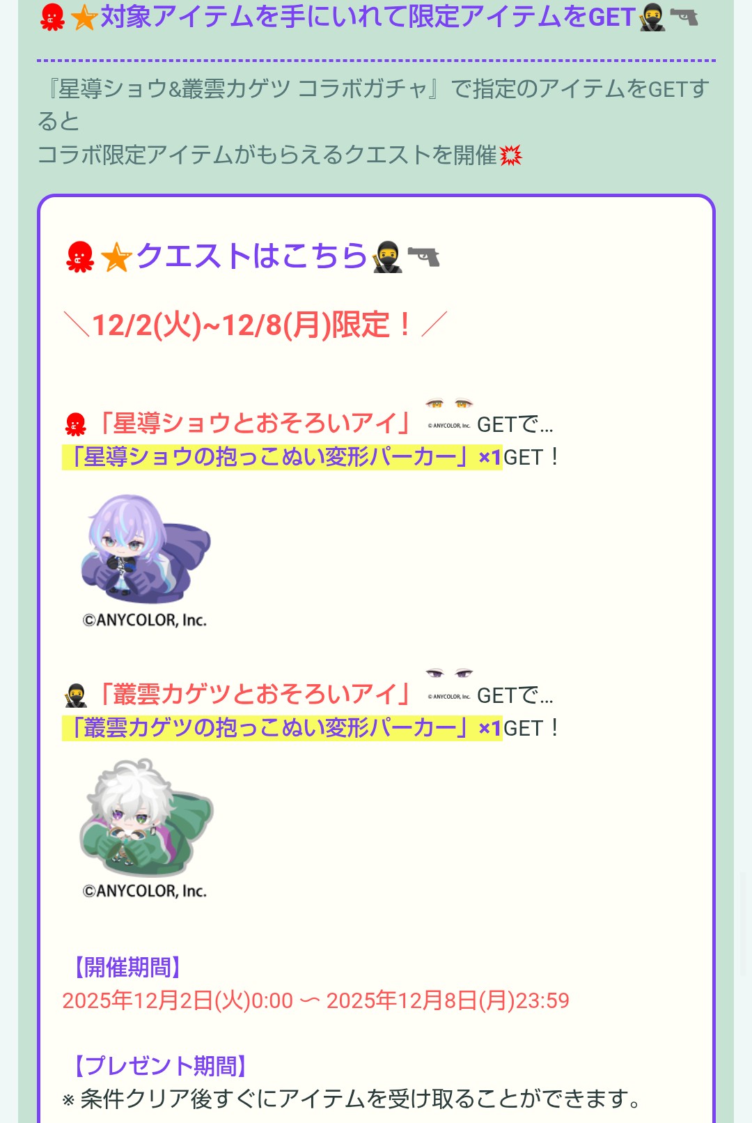 星導ショウと叢雲カゲツの有料ガチャとして