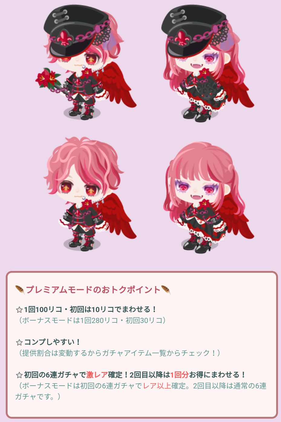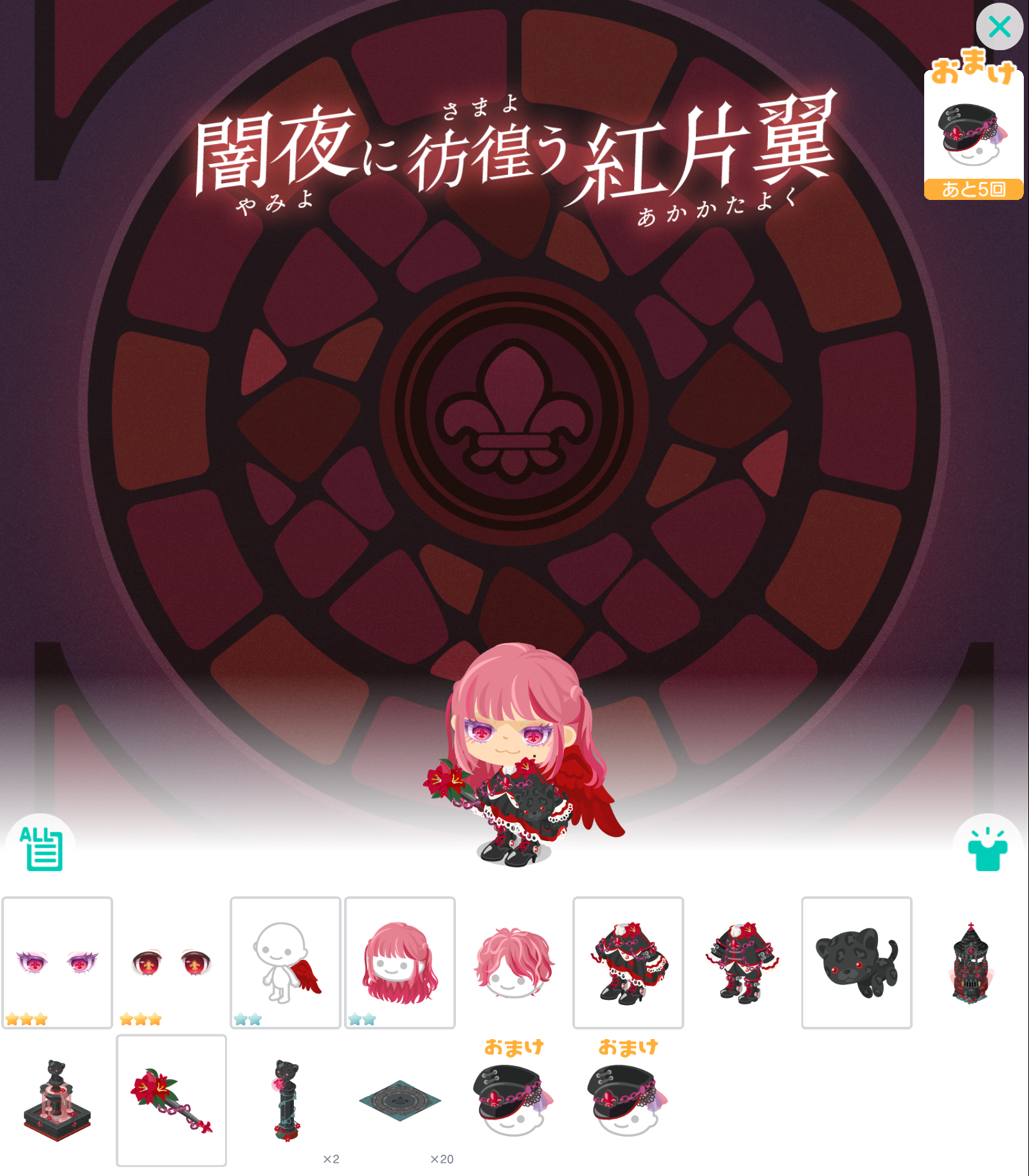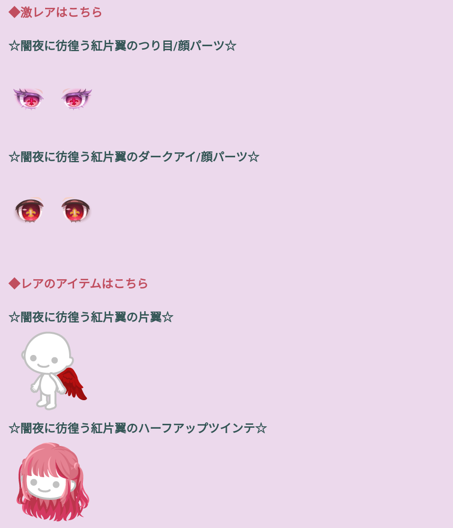 こちらではタイトルネームの割にクオリティは低いわついている物が付属されてないわでテケトー感のパない有料無料選択ガチャより「闇夜に彷徨う紅片翼」が登場したので記録していきますね(^_-)-☆