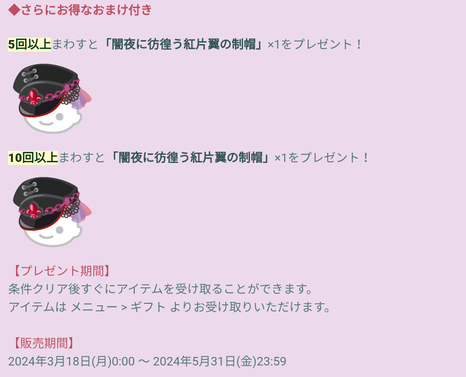 おまけ内容では有料も無料も初回の連ガチャで貰う事が出来る5回っていう点はおまけとしては〇なんだけど~毎回恒例化のこうかん機能用に2個目が貰える~シリーズはいい加減しつこいし需要があってこその2個目なんじゃね?って思えるのでそれするならもっと貰えて嬉しいシリーズとして改善してもらいたいですよね(´ー`*)ウンウン
