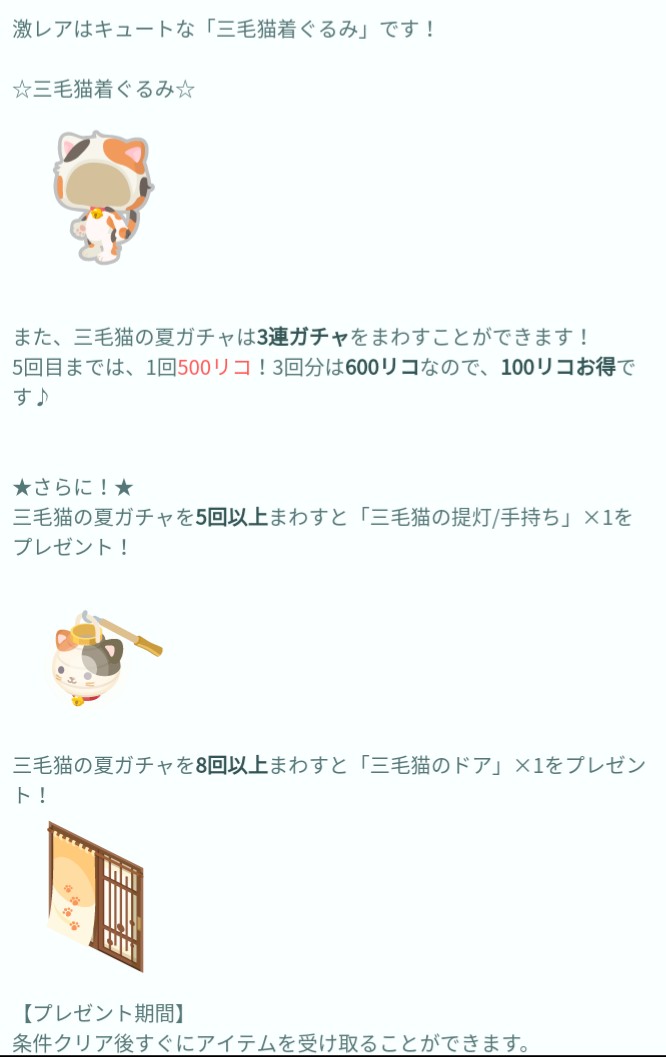 お次はこの三毛猫の夏ガチャに合わせて