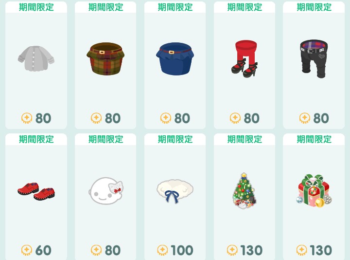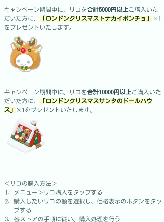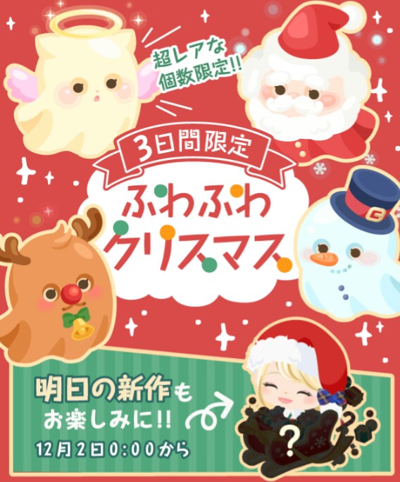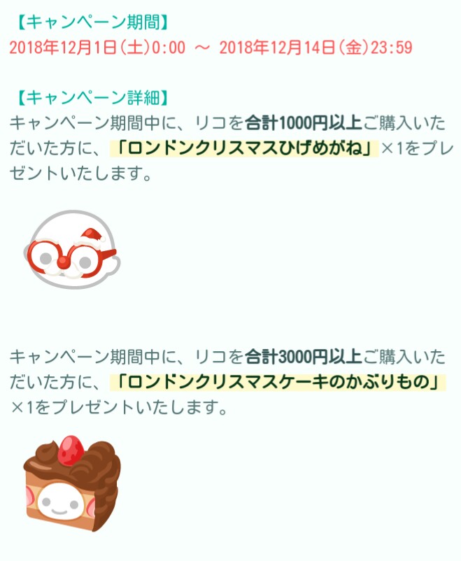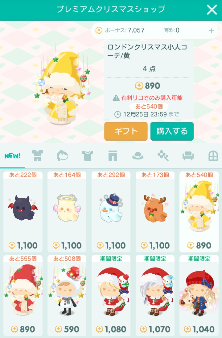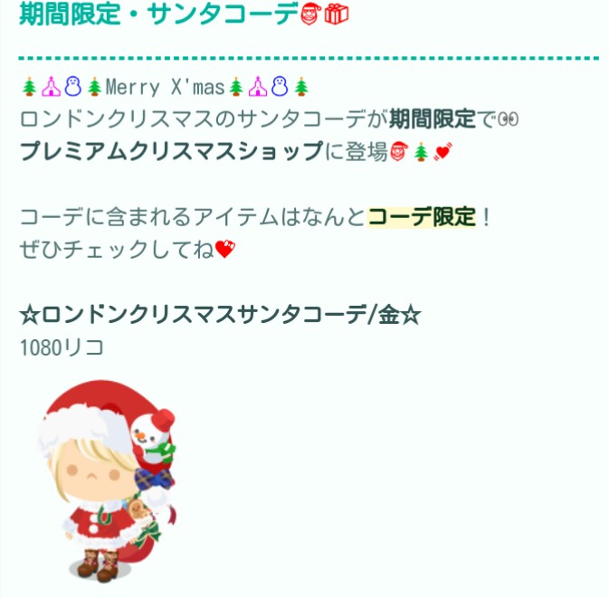 はいw ここでもクリスマスといえばサンタさんですが、こちらもさっきのふわふわと同じくらいのリコ、1080リコと更に1,000円を課金しないとクリスマスイベントは楽しまさせんよ?と言わんばかりな内容となっていますw