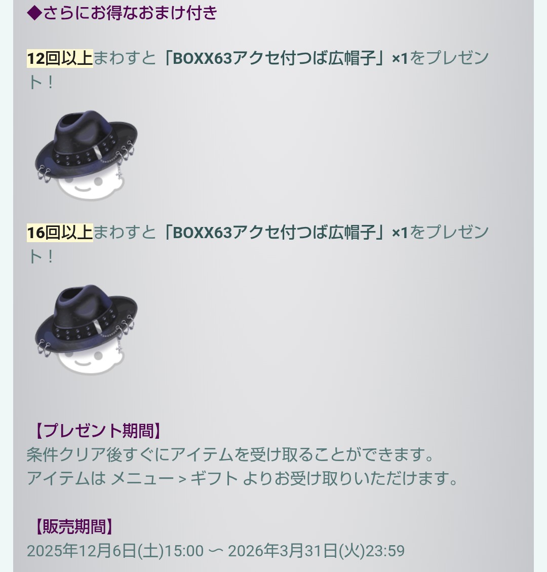 おまけ内容では初回の連ガチャでは貰えない12回(連ガチャは8連のため)+16回にて