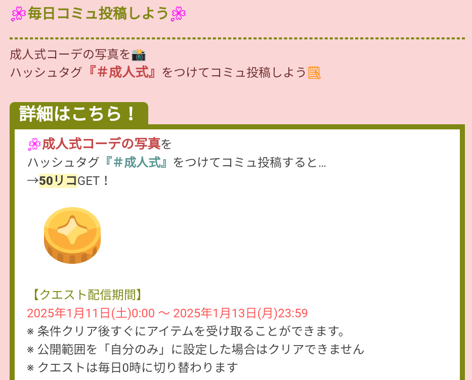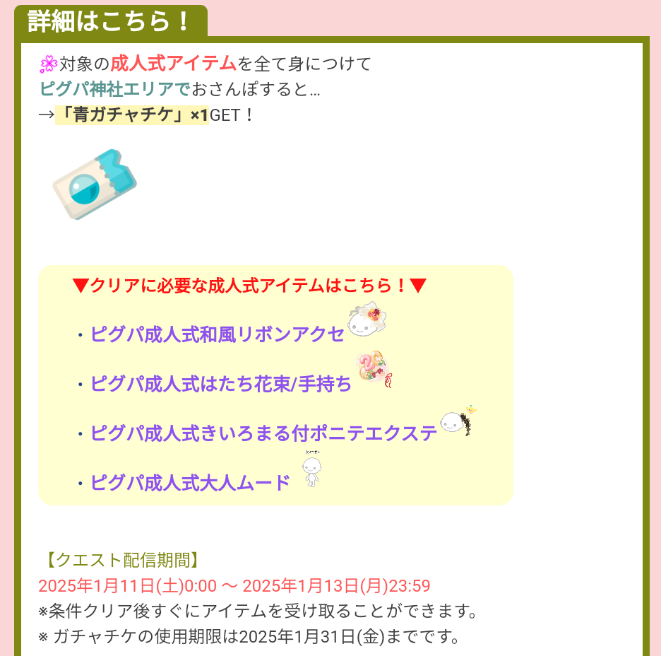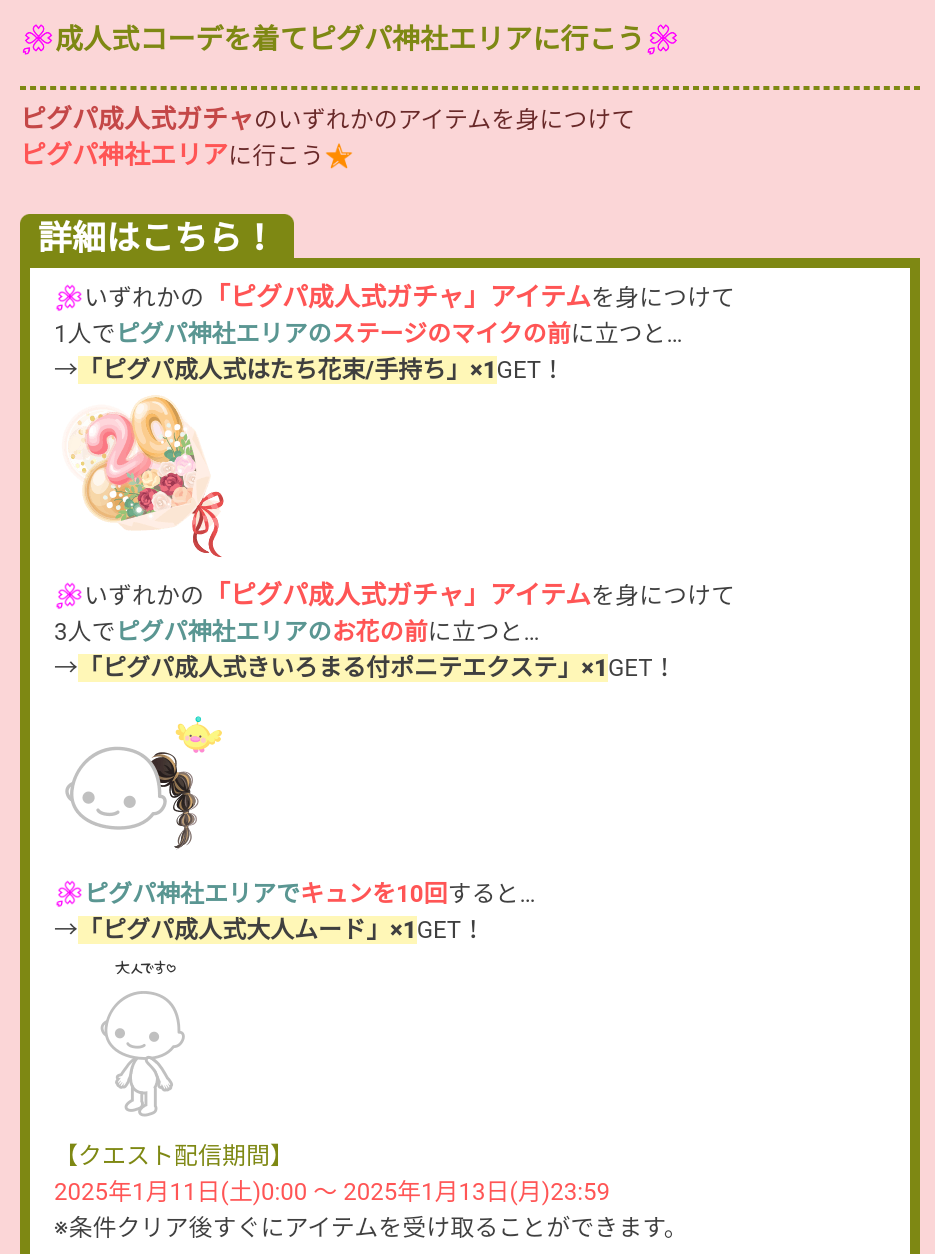 ピグパ民 毎年成人式のクエストやってるよね~今回はどうなの?(・・?