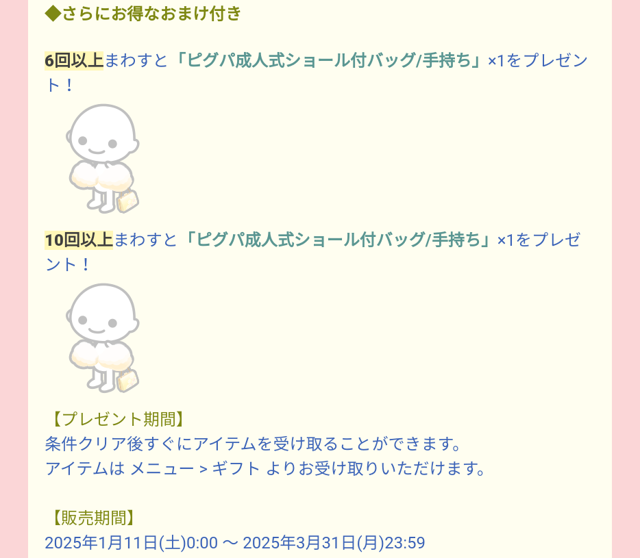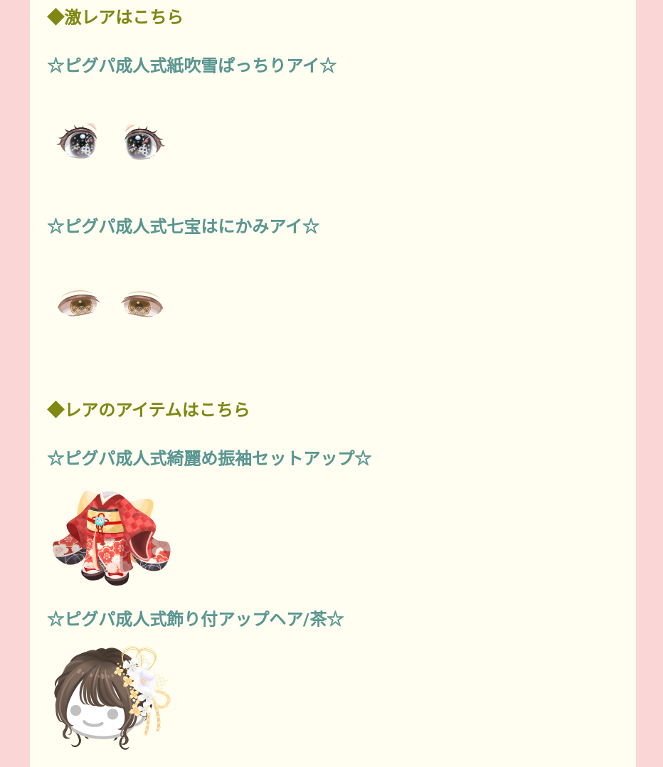 ーーーーー下記よりピグパ成人式ガチャ記事となりますーーーーー