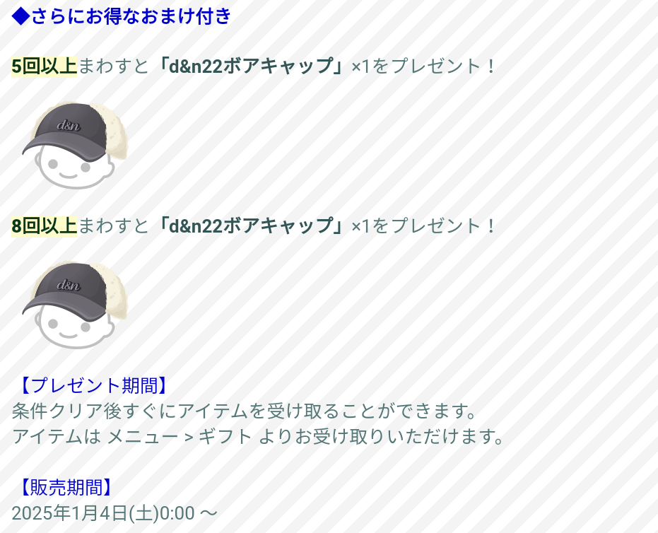 規定回数でのおまけと販売期間