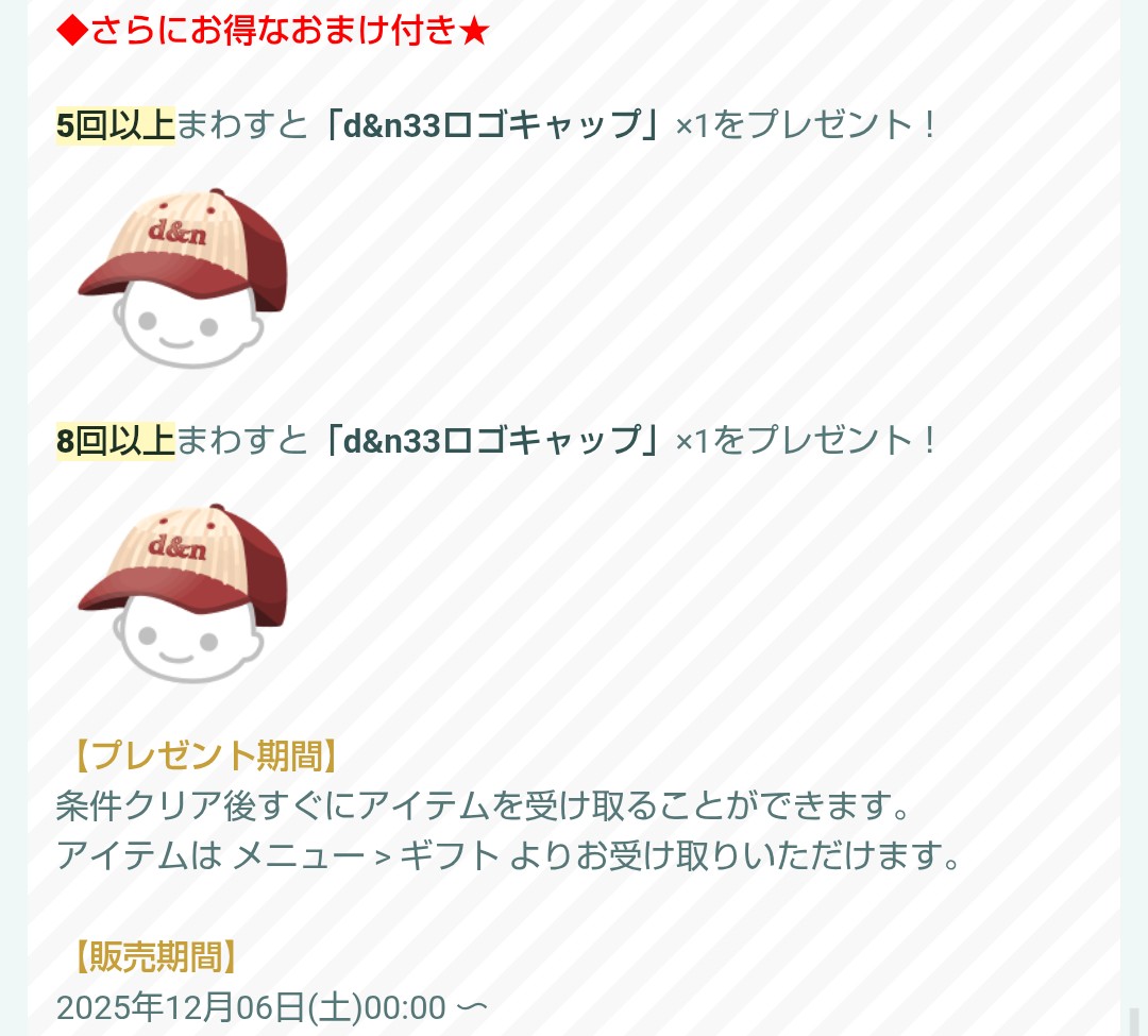 規定回数でのおまけと販売期間