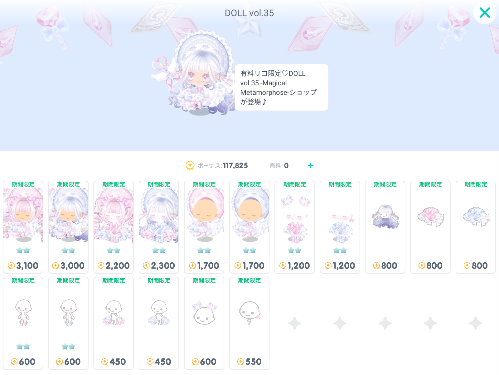 こちらではピグパブランドのゴシック系で人気なDOLLが魔法世界と合わさったような有料ショップより
