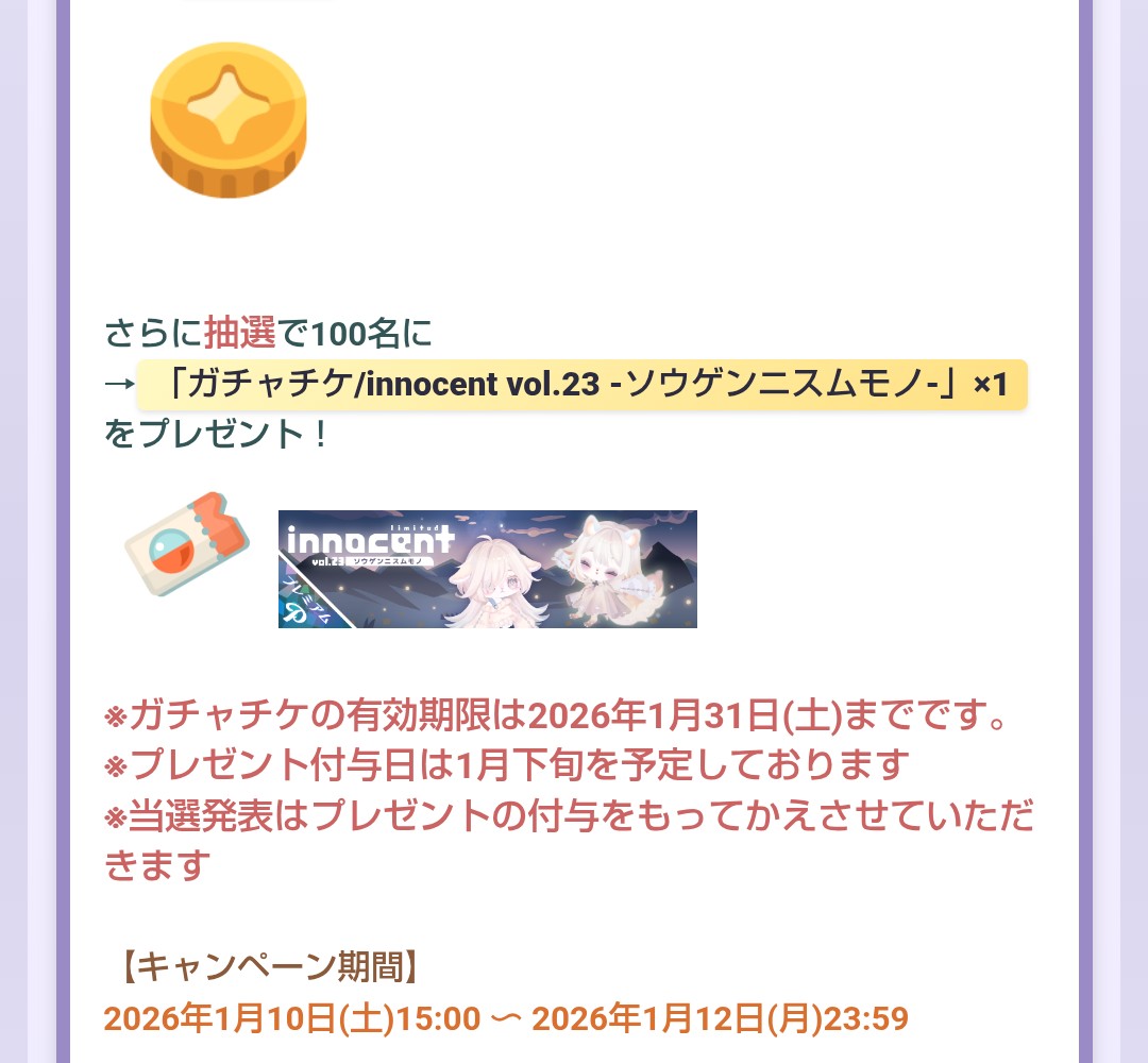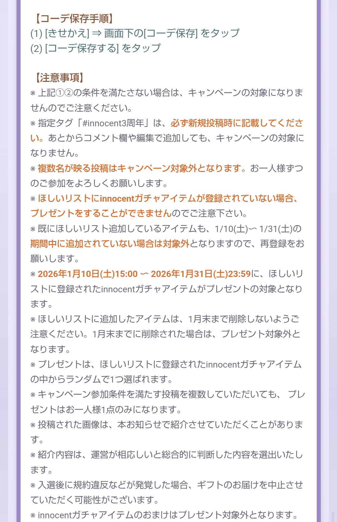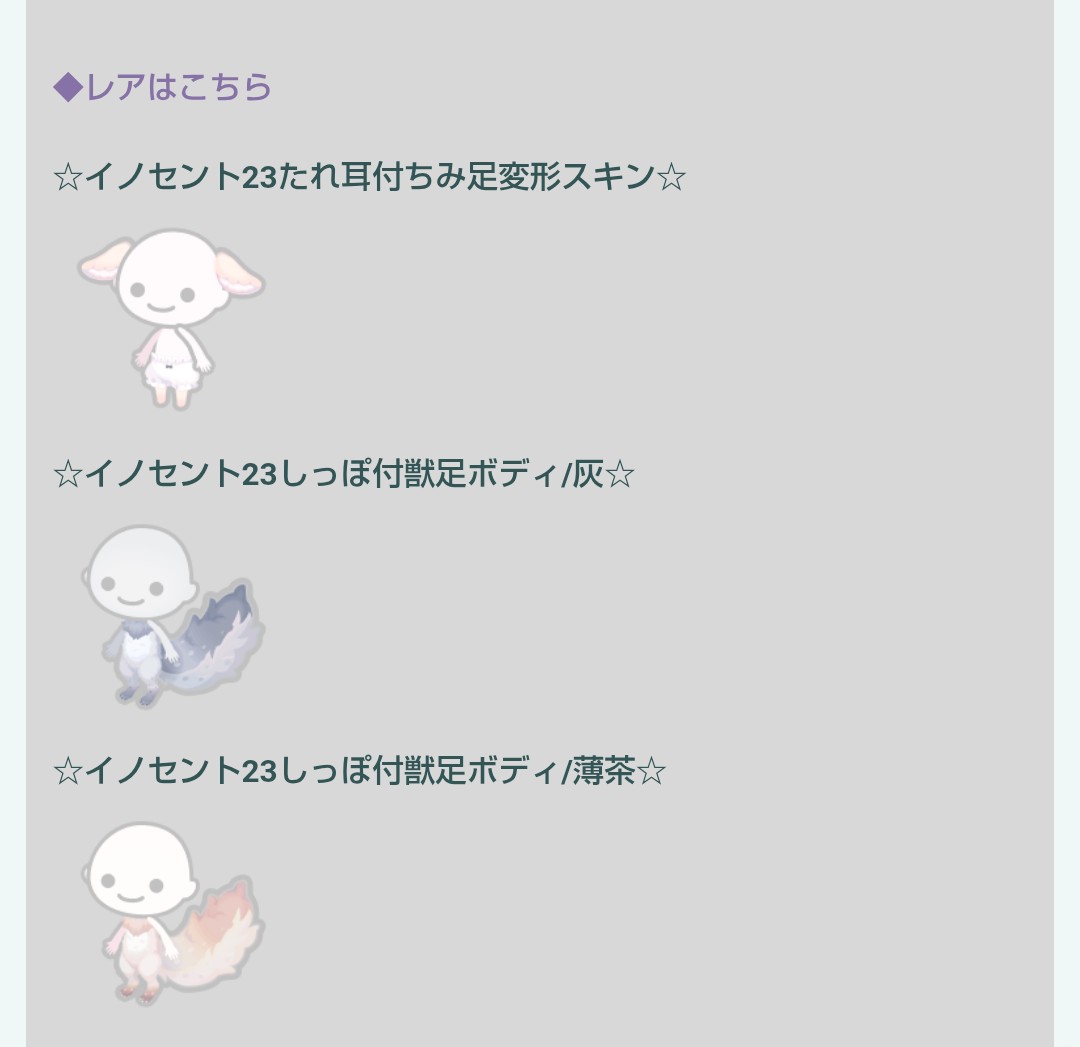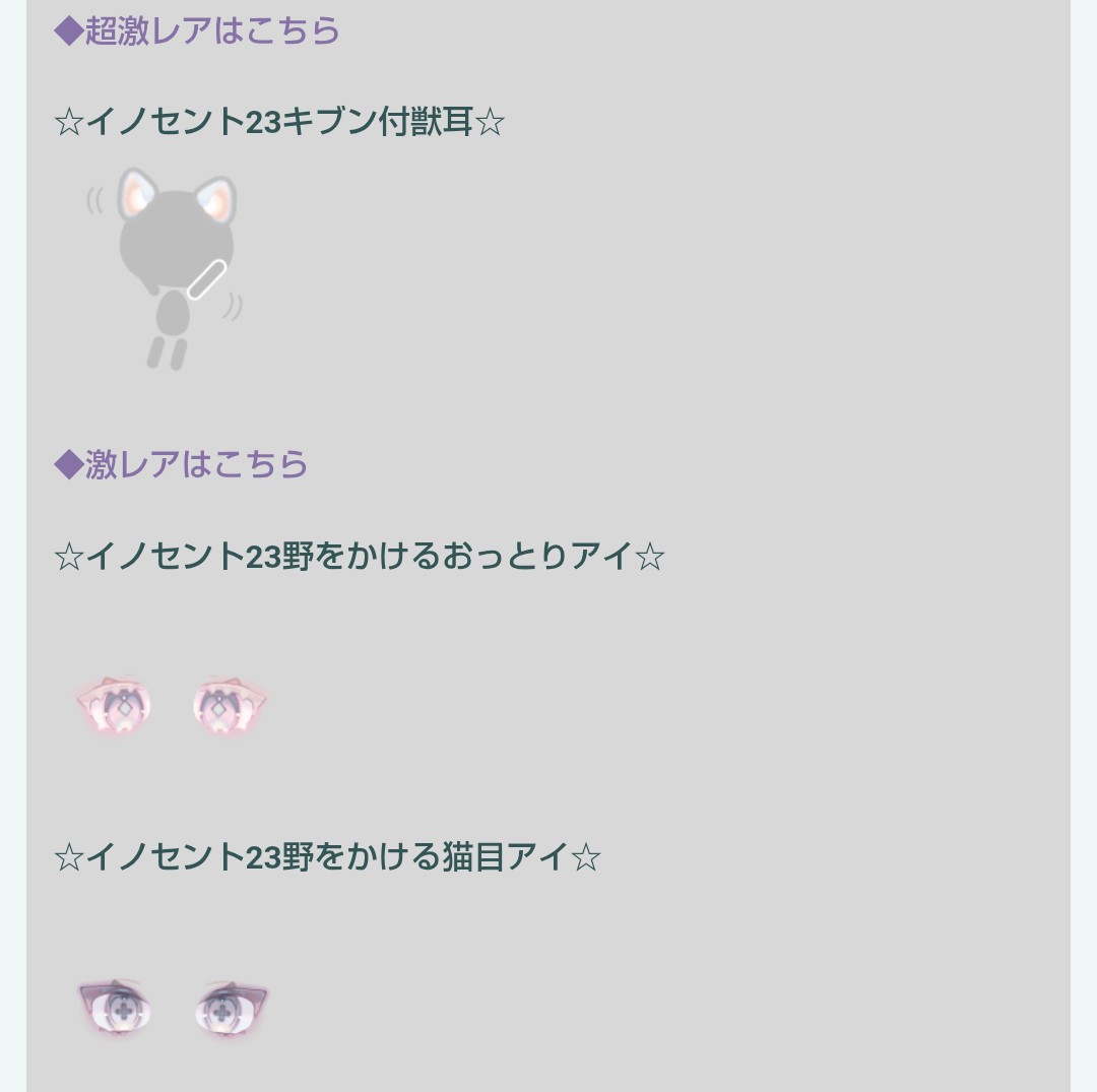 その中で上位5名に選ばれたら新作イノセントガチャの欲しいリストがついたアバターがもらえるそうですふー(๑¯ω¯๑)ーん