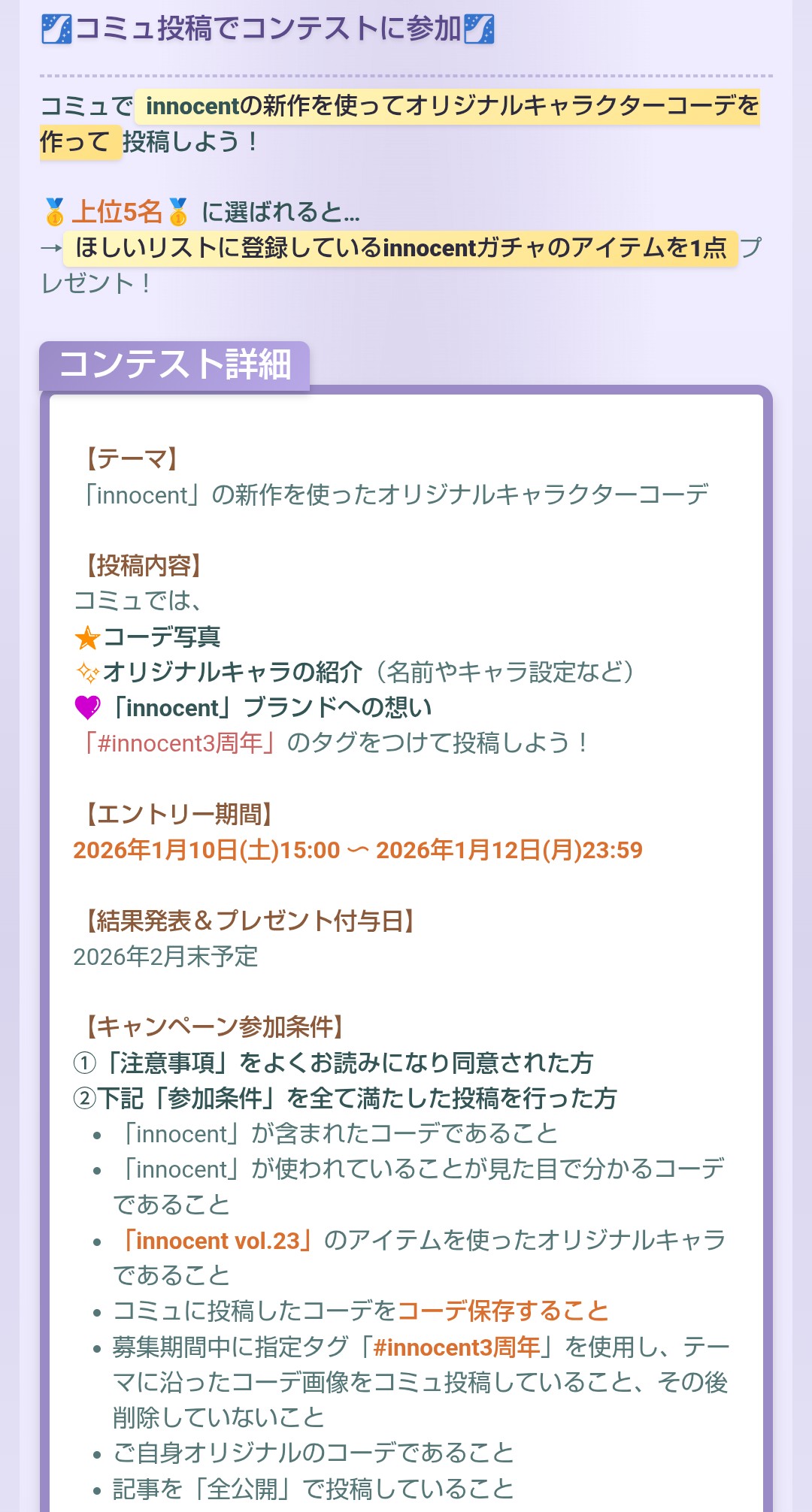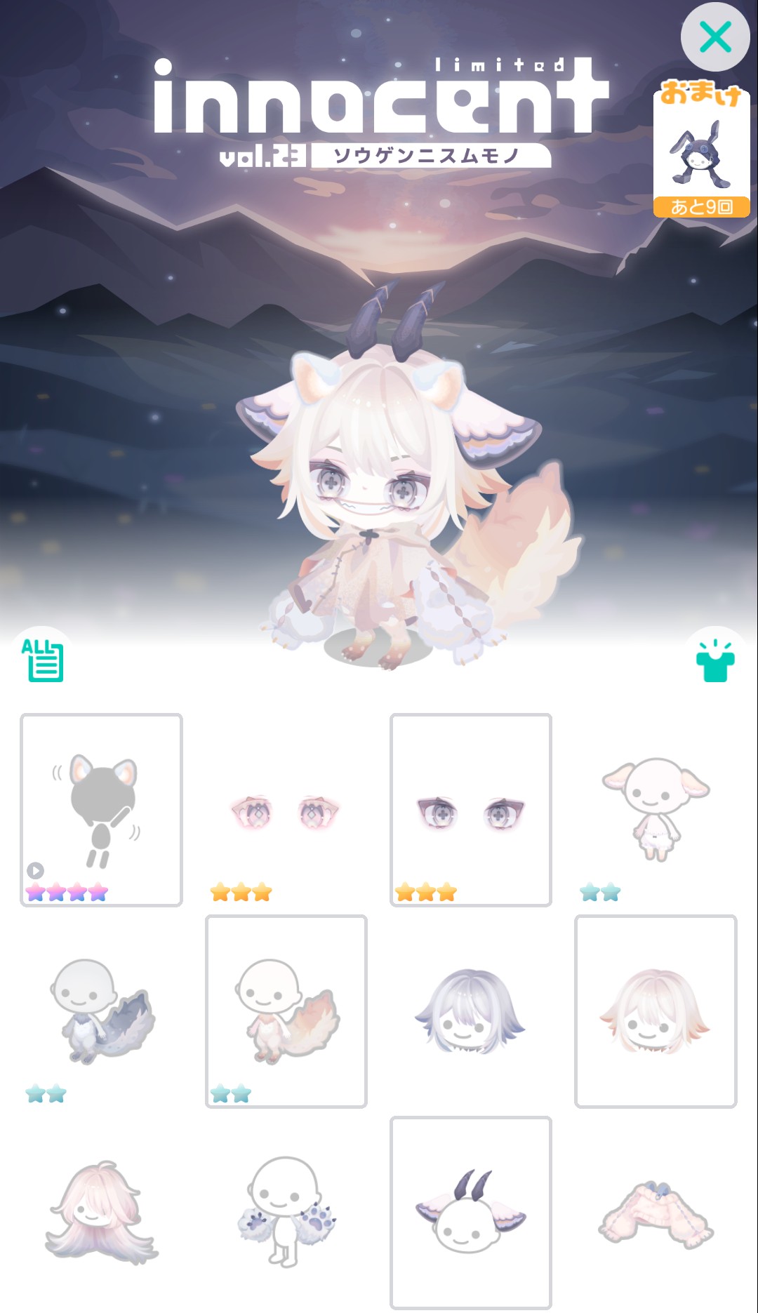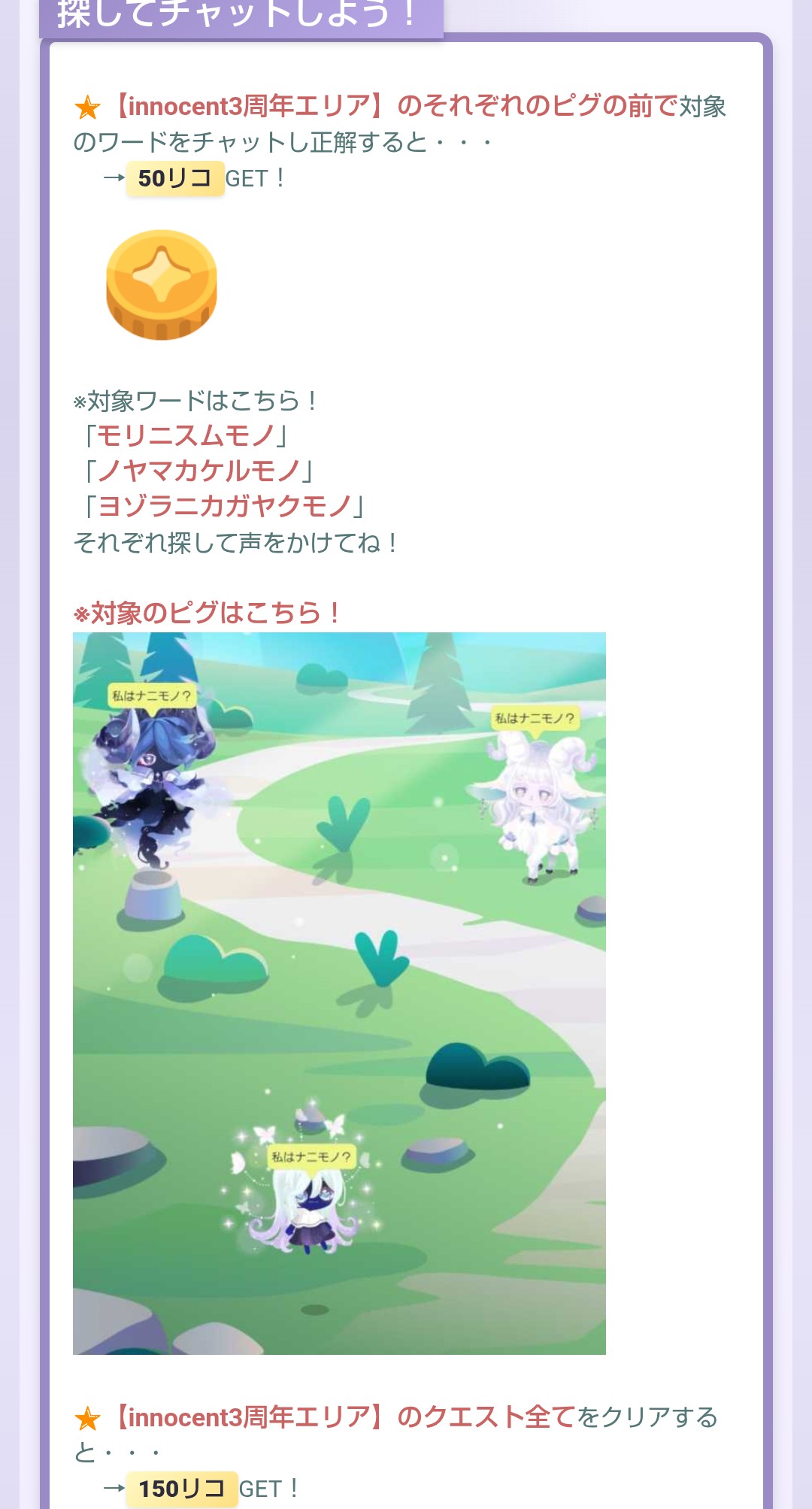 その中で上位5名に選ばれたら新作イノセントガチャの欲しいリストがついたアバターがもらえるそうですふー(๑¯ω¯๑)ーん