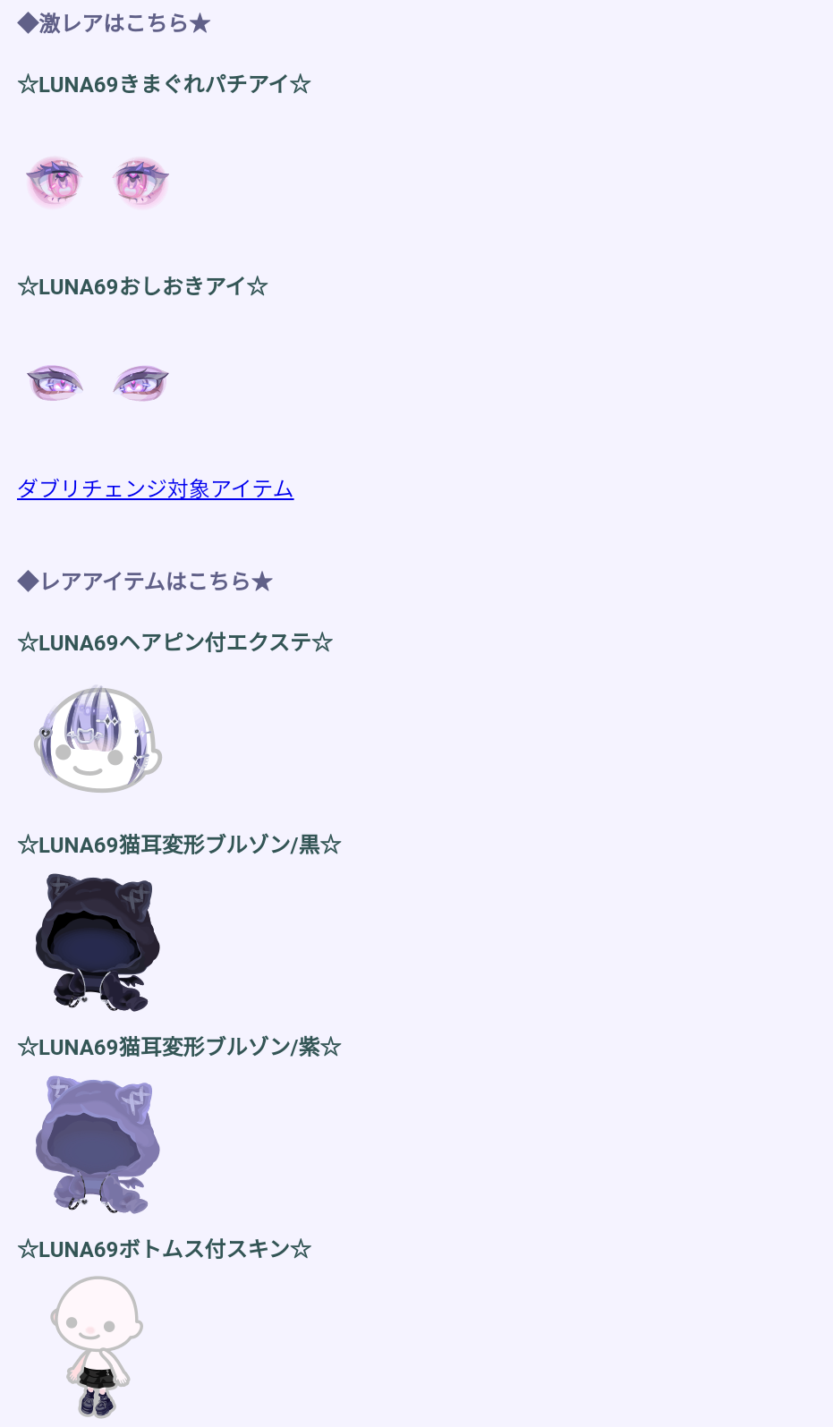 男女別々に使えそうな顔パーツの目が2種類あり、どちらもクオリティが高く激レアとしての価値があると思いましたw