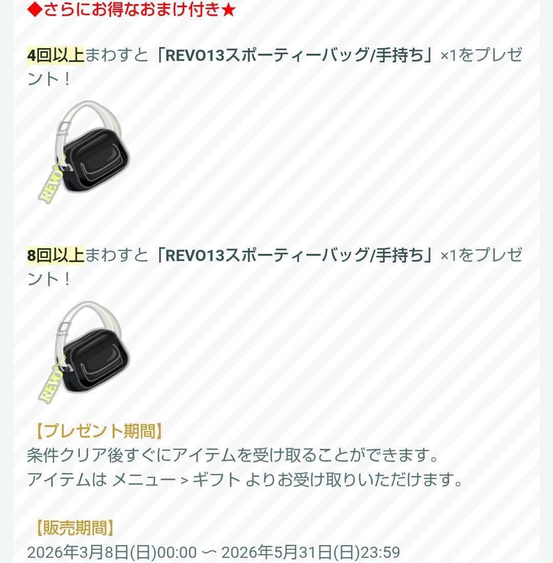 おまけ内容では初回の連ガチャで貰うことができる4回(連ガチャは6連のため)+8回にて