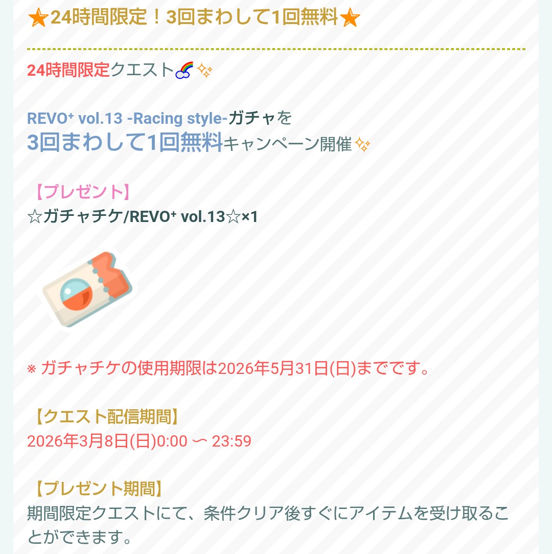 いち早く有料ガチャチケを配布に切り替えたほうが良い24時間限定クエスト