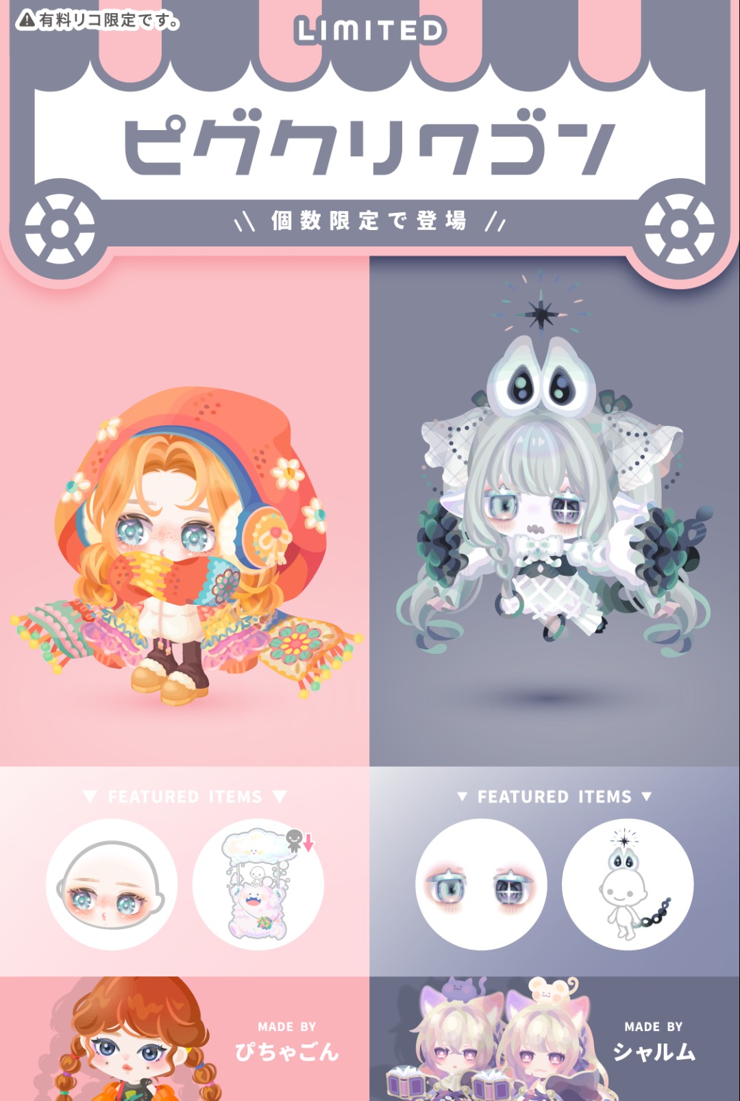 ピグクリワゴン ぴちゃごん&シャルム 閲覧用になるだろうから何も言いますまいwww 公開日:2025年11月14日 ショップ関連 こちらでは2025年11月よりピグクリことピグクリエイターの ぴちゃごんとシャルムが制作した有料ショップより 「ピグクリワゴン」が登場したので記録していきますね(`◉◞౪◟◉) 続きを読む