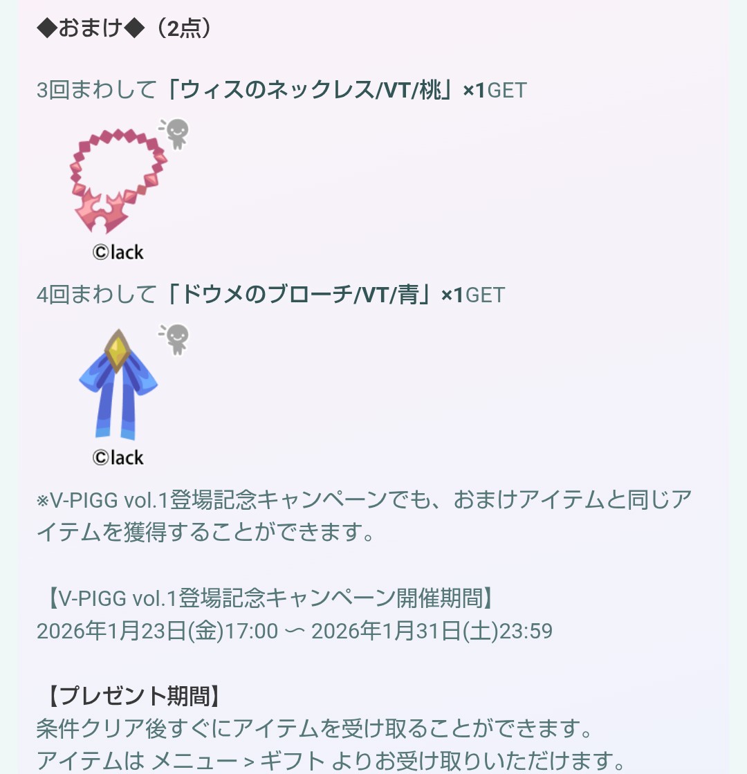 同日登場のV-PIGG推しガチャは↑のガチャとは違うだけで物とする。