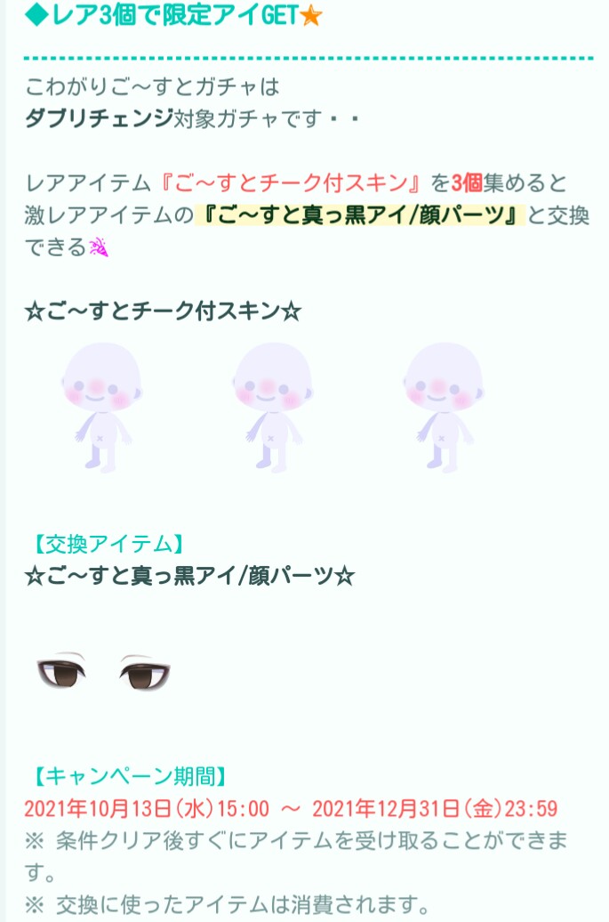 そしてダブリチェンジでは男の子向けに見える顔パーツの目が交換材料とはなっているもののレア設定でのスキンチェンジアバターが3つも必要となっている辺り搾取傾向にしか無いと思えるハロウィンガチャで魅力を感じるより鬼畜を感じちゃうのはダデェだけじゃないはず(ΦωΦ)シランケドw