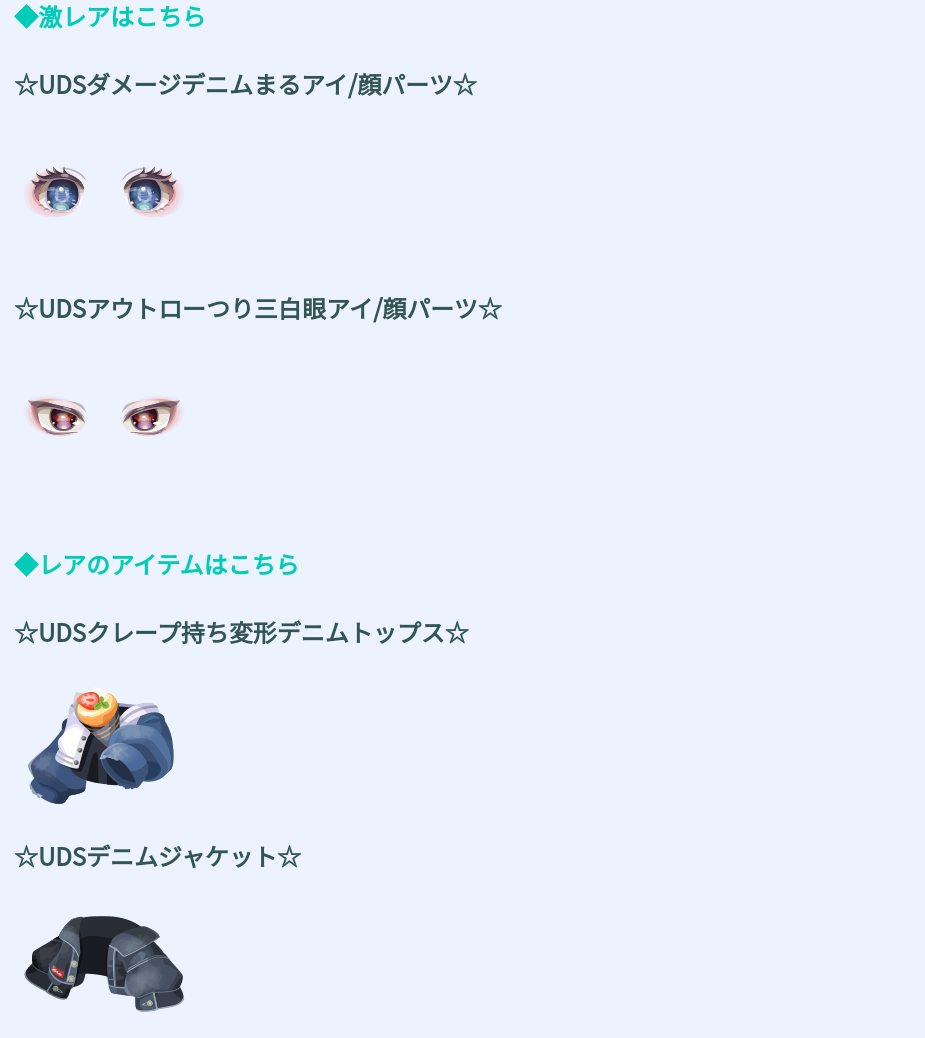 そしてレア設定では色合い良く腕変形シリーズのトップスなど少々力が入れられているアバターという事でデニムネタモチーフとしては〇だなぁって思えて質だけで言えば悪くは無いなって思えるレアリティでしたね(´ー`*)ウンウン